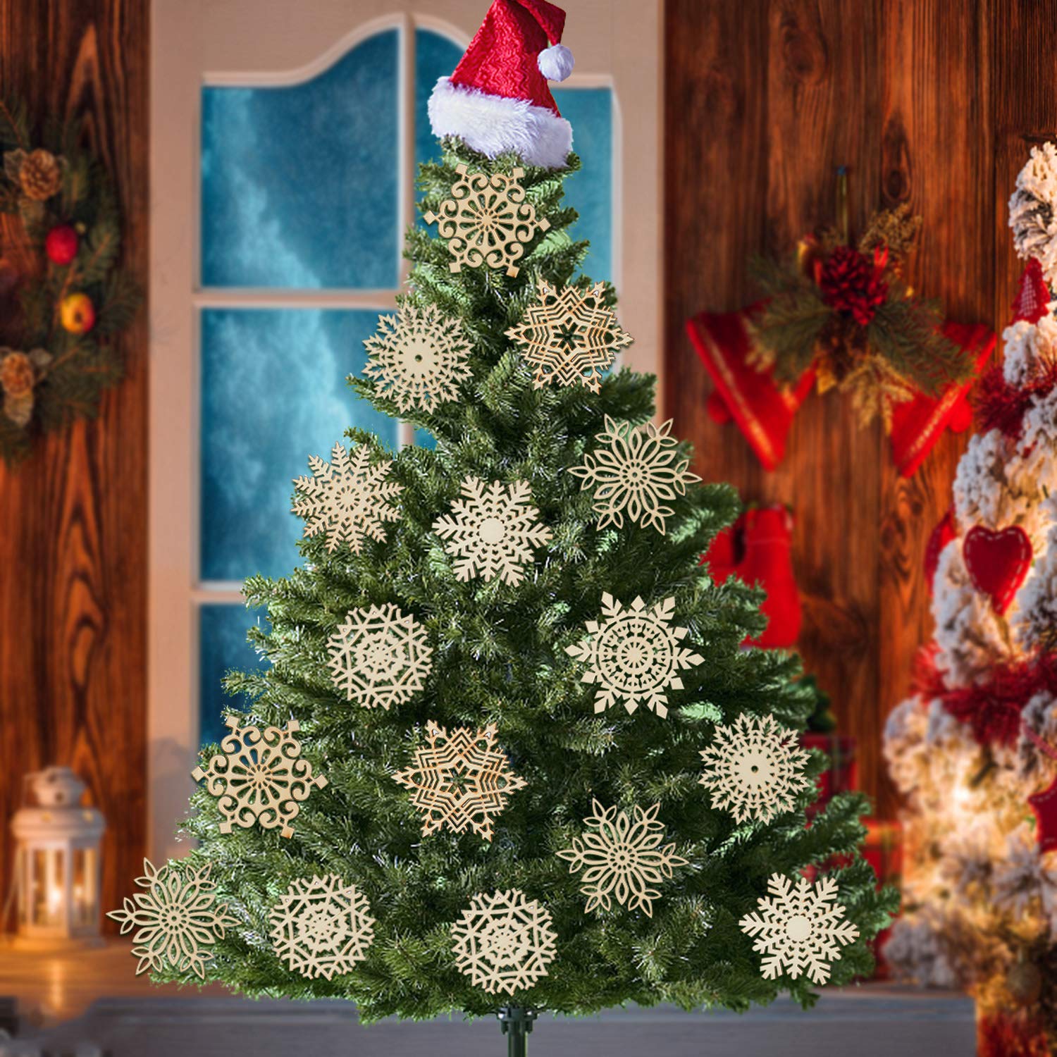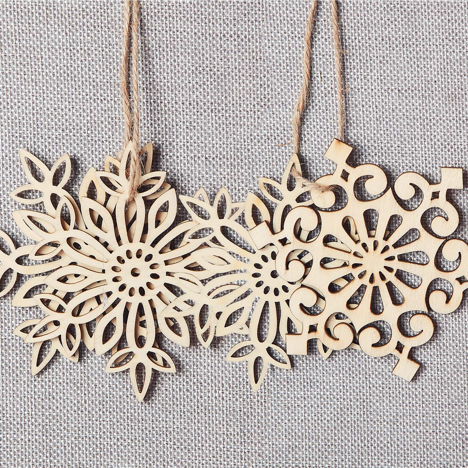 N&T NIETING 27pcs Wooden Snowflakes Shaped Embellishments Hanging Ornaments for Christmas Decoration