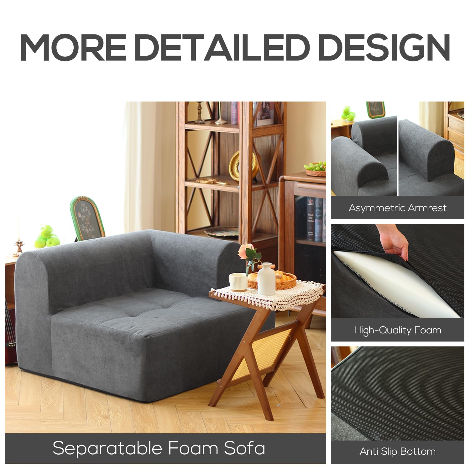 • Smart Design: We design the twin sofa with details in mind. The double stitch, non-slip bottom, ergonomic shape, removable cover and dependant liner will enhance user experience to the maximum.