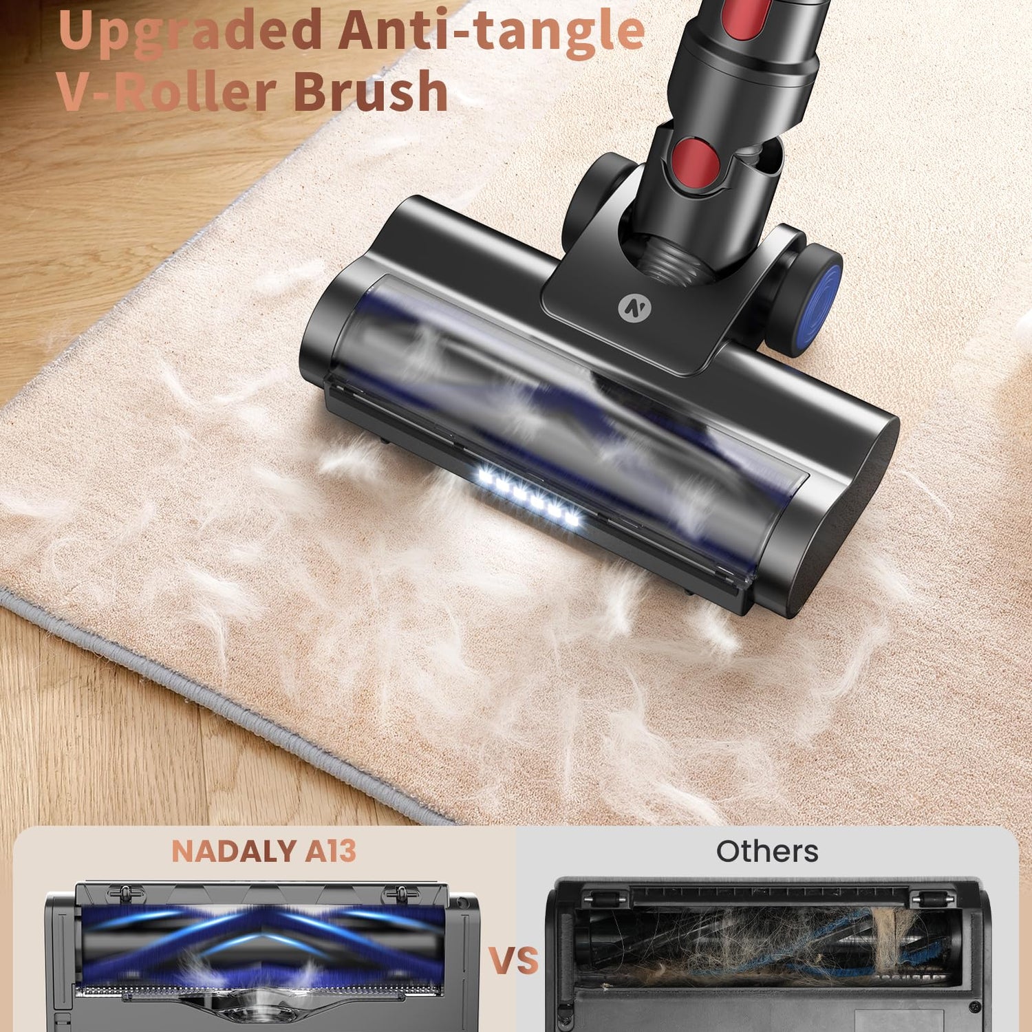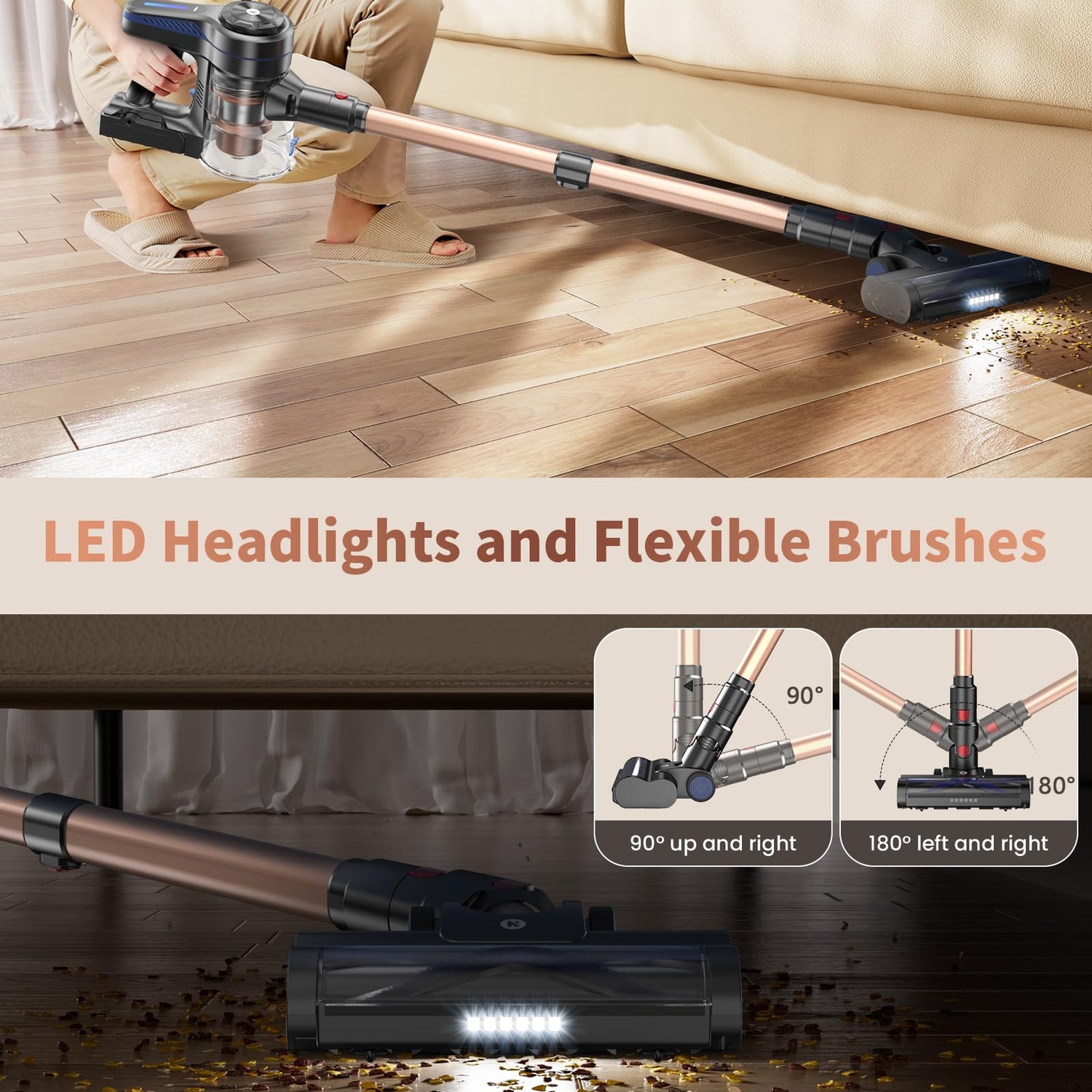 - ๐ฝ-๐บ๐ฏ๐จ๐ท๐ฌ ๐จ๐ต๐ป๐ฐ-๐ป๐จ๐ต๐ฎ๐ณ๐ฌ ๐ญ๐ณ๐ฌ๐ฟ๐ฐ๐ฉ๐ณ๐ฌ ๐ญ๐ณ๐ถ๐ถ๐น ๐ฉ๐น๐ผ๐บ๐ฏ โค Hardwood Floor Vacuum Cleaner comes with an LED headlight and a rotatable floor brush, making it easy to clean dead spots under furniture without moving it. The upgraded V-shaped anti-tangle roller brush effectively solves the problem of hair tangling that is common with traditional vacuum cleaners.