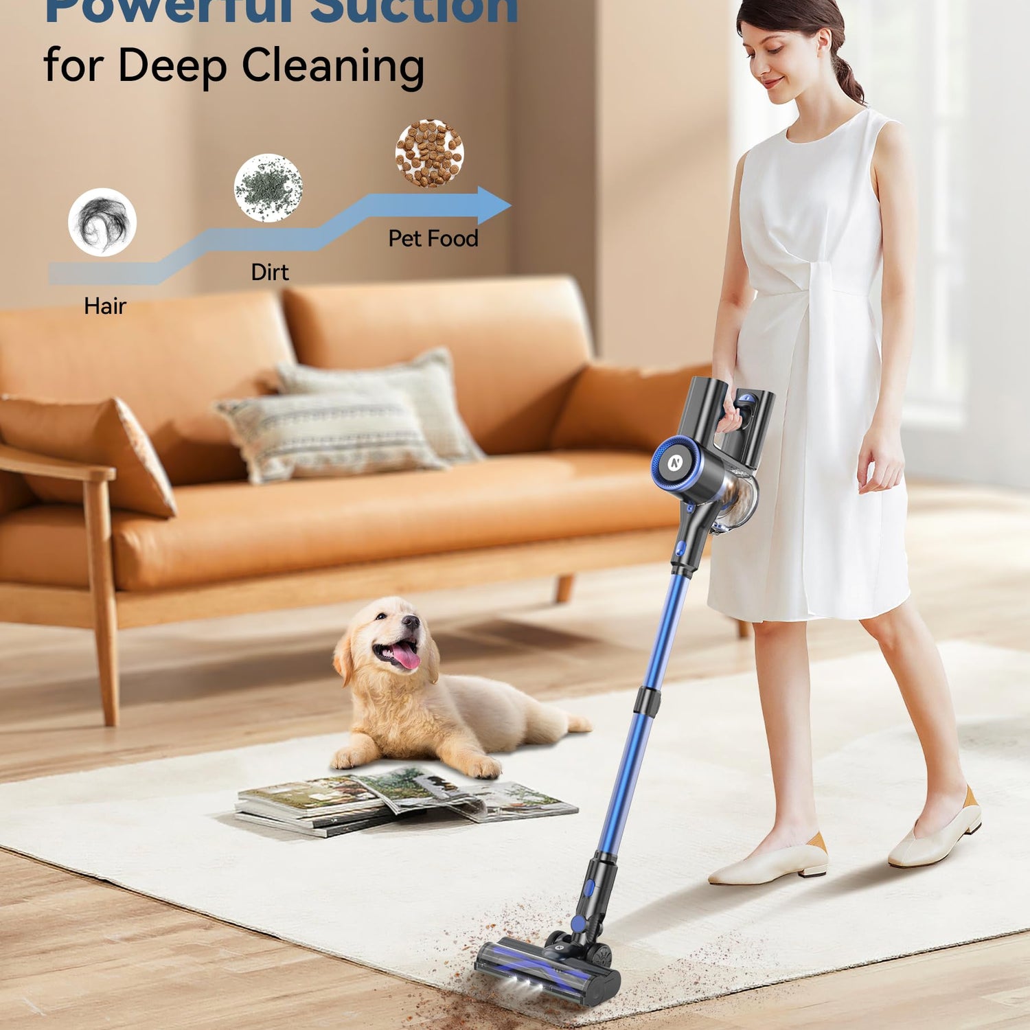 NADALY Cordless Vacuum Cleaner, Stick Vacuum with 3 Powerful Suction Modes, Max 45 Mins Runtime, Anti-Tangle Vacuum Cleaner for Home, 8-in-1 Rechargeable Vacuum for Carpet, Pet Hair, Hard Floors