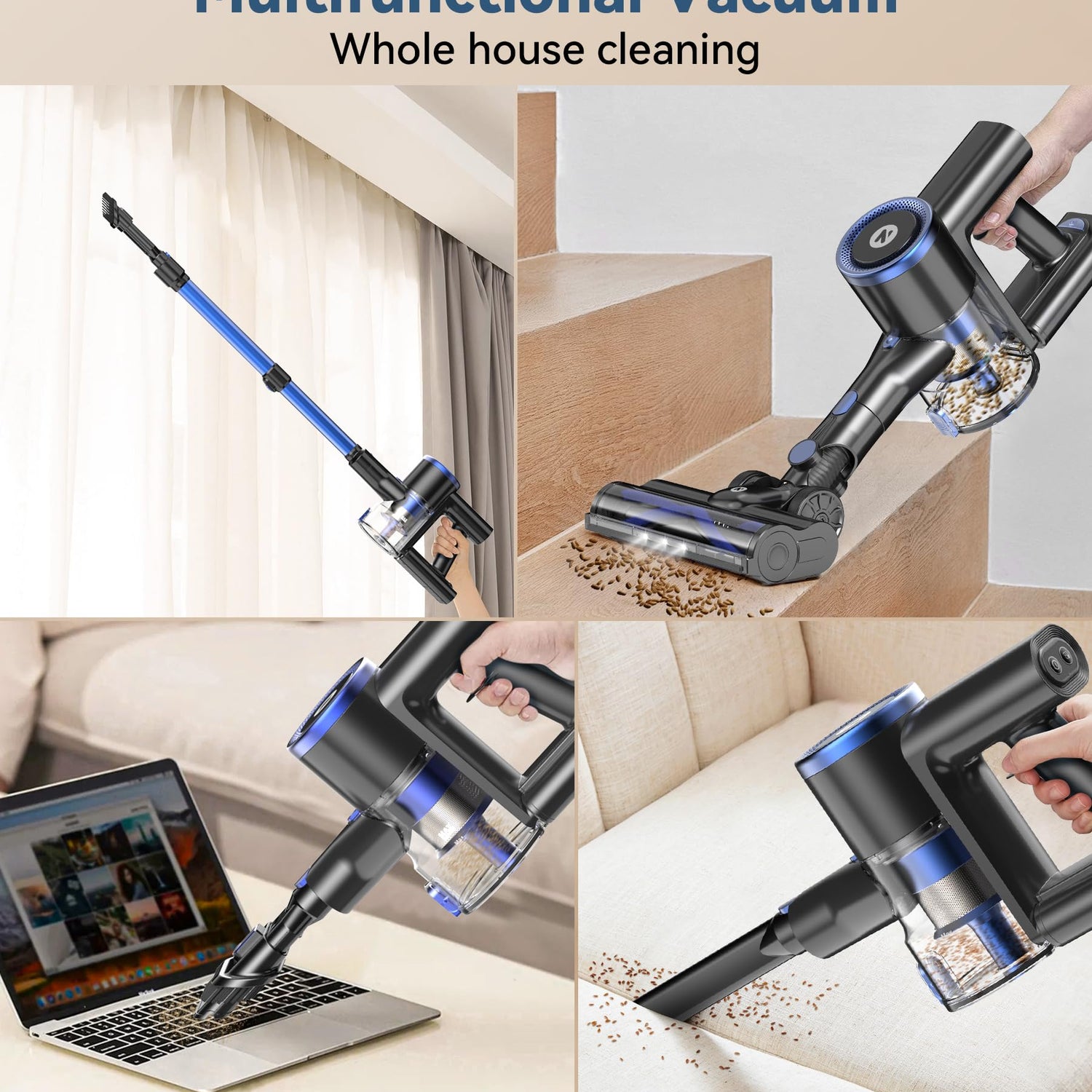- Lightweight and Multifunctional Vacuum: This vacuum cleaners for home lightweight and cordless design is very easy to maneuver for long time use and won't deal with fatigue. It comes with multiple accessory fittings and a retractable tube that can be assembled into a multifunctional handheld vacuum cleaner that can deep clean curtains, beds, sofas and any dead space