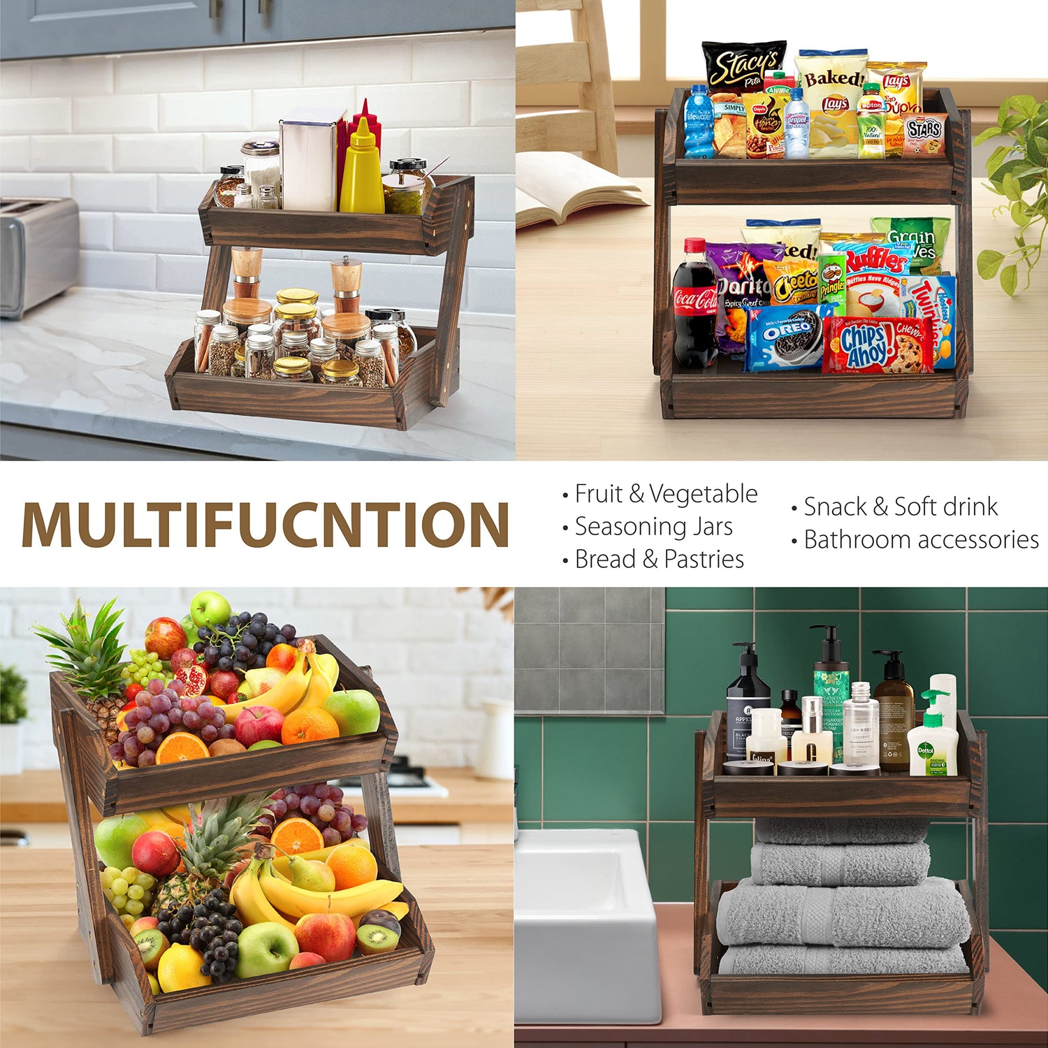 - ✔️ NECESSITY FOR ORGANIZATION: In addition to produce, snacks, bread, pastries, and seasonings, this 2-tier basket can also be used for bathroom toiletries, household products, pantry storage, and more!