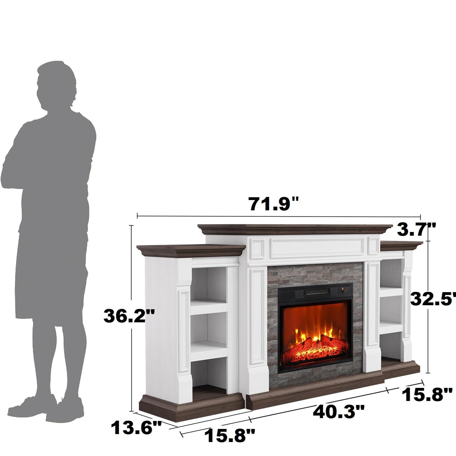 Naice 70" Electric Fireplace with Mantel and Cabinets, Fireplace TV Stand for Living Room Bedroom, Stacked Stone Surround and Remote Control 3D Realistic Flame
