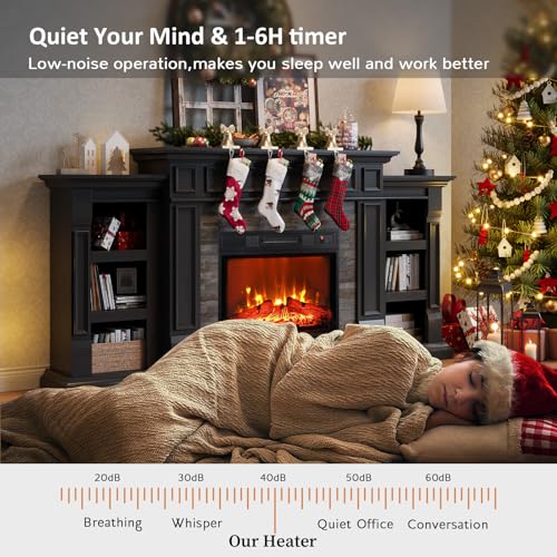 - 【Realistic 3D flame】This electric fireplace heater features realistic 3D flame effects. You can control different flame brightness, heating and timer, providing a cozy and warm atmosphere to your room.