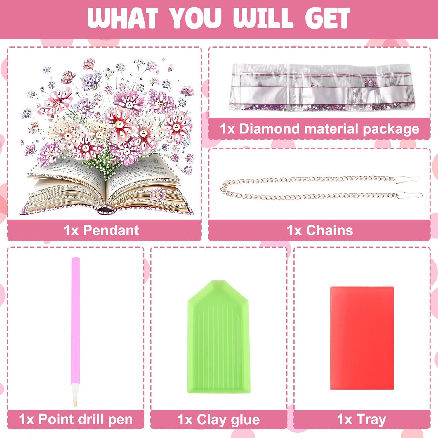- Diamond Art Decor And Gift: This Book Flower gem painting pendant is an exquisite home decoration and gift. It adds a unique artistic touch to spaces like the living room, dining room and studio, with diamonds shining under the light to enhance the overall aesthetic. You can give them to your friends on their birthday, Christmas, New Year, etc, bringing joy and surprise to loved ones