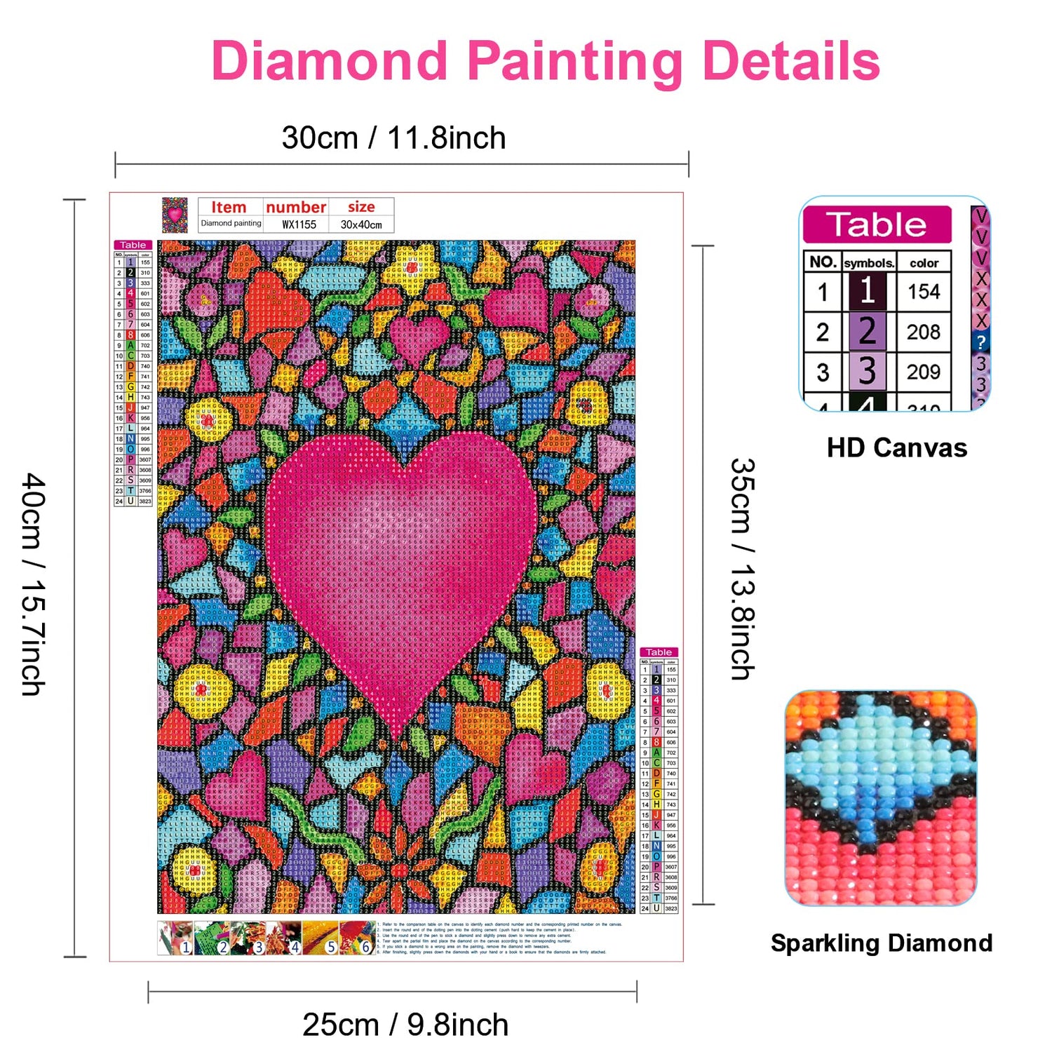 NAIMOER Valentines Diamond Art Kits Heart for Adults, Love Diamonds Art Kits Round Full Drill Diamond Arts Kit Heart Diamond Picture Arts Craft for Home Wall Decor 11.8x15.8 inch