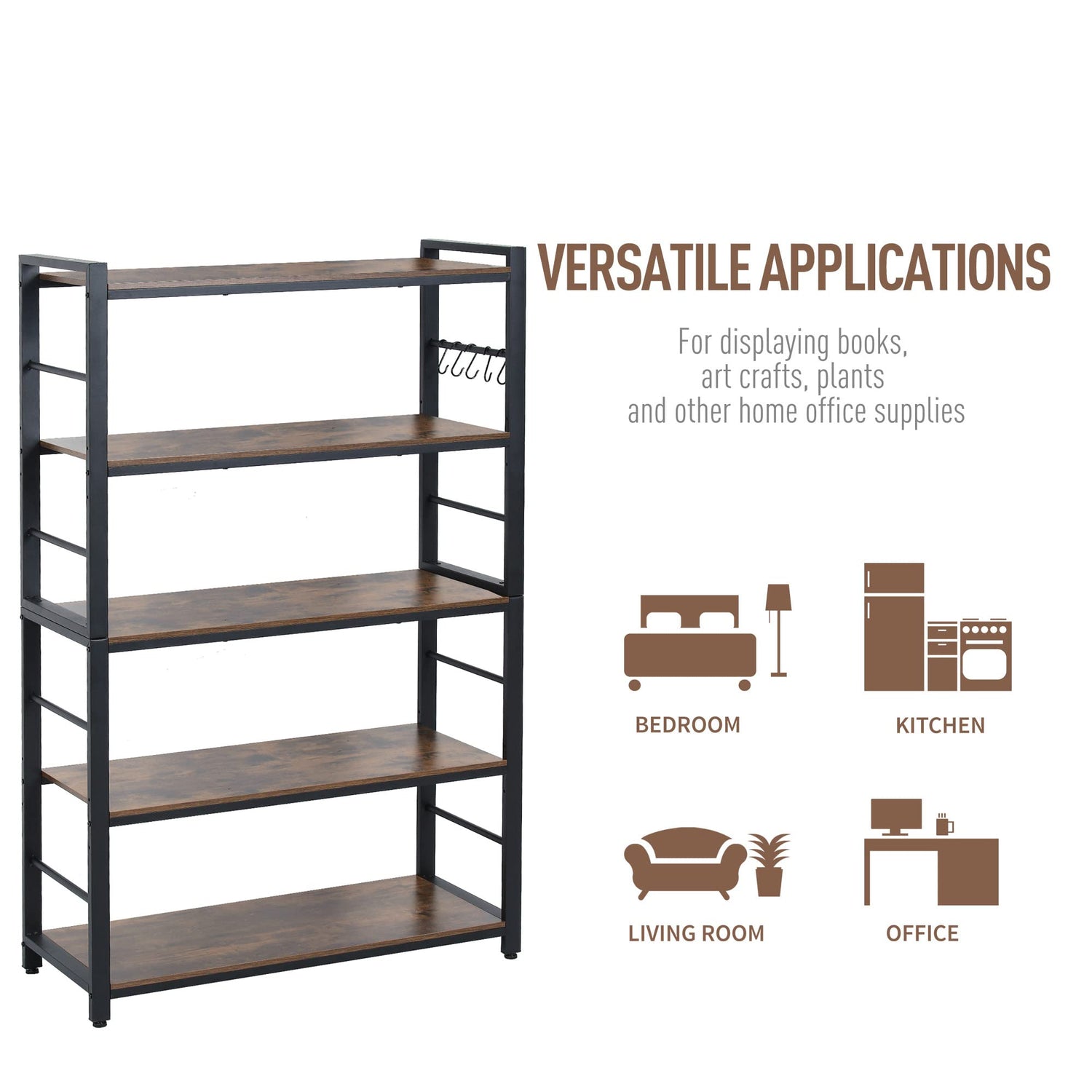- 【Multifuncitonal Bakers Rack】 This kitchen storage rack can be used as the coffee bar stands, kitchen island, microwave stand, spice rack organizer, display rack, balcony plants shelf, or bookcase for Kitchen、Living Room,Home Office,Bathroom,Storehouse and so on.