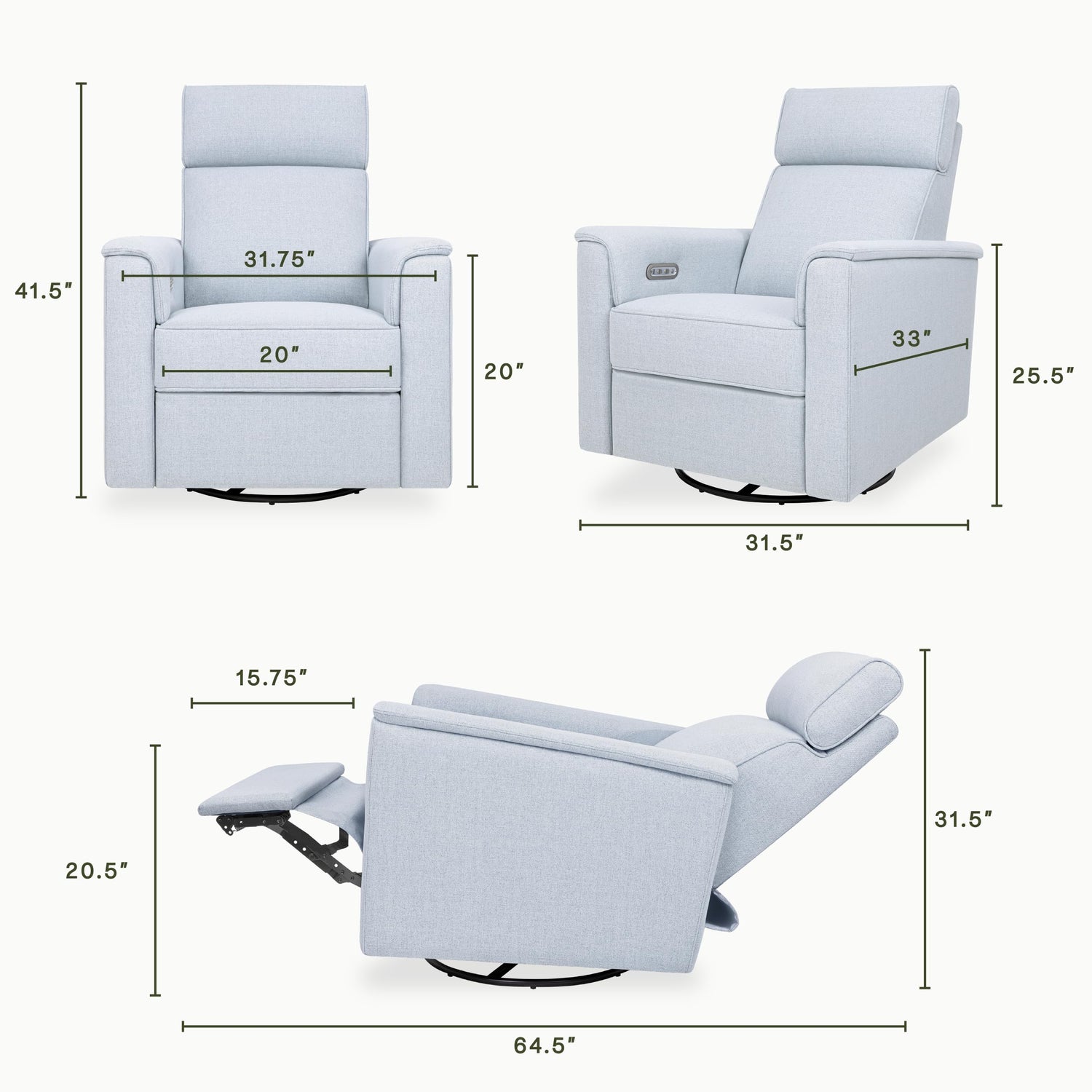 Details: The Willa Plus Power Glider Recliner w/ Power Headrest's pillow lined arms, smooth glide, and power recline + power headrest creates the most comfortable and luxurious resting spot for you and your baby.