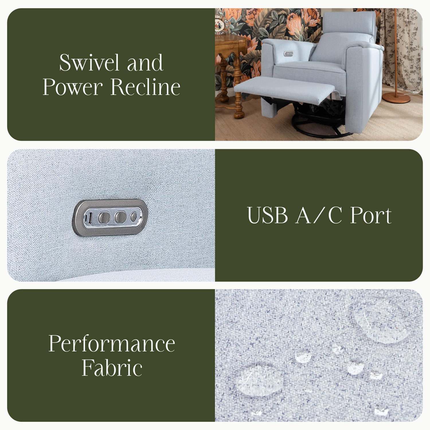 NAMESAKE Willa Plus Power Glider Recliner w/Power Headrest in Performance Blue Chambray Eco-Twill, Water Repellent and Stain Resistant, Greenguard Gold and CertiPUR-US® Certified