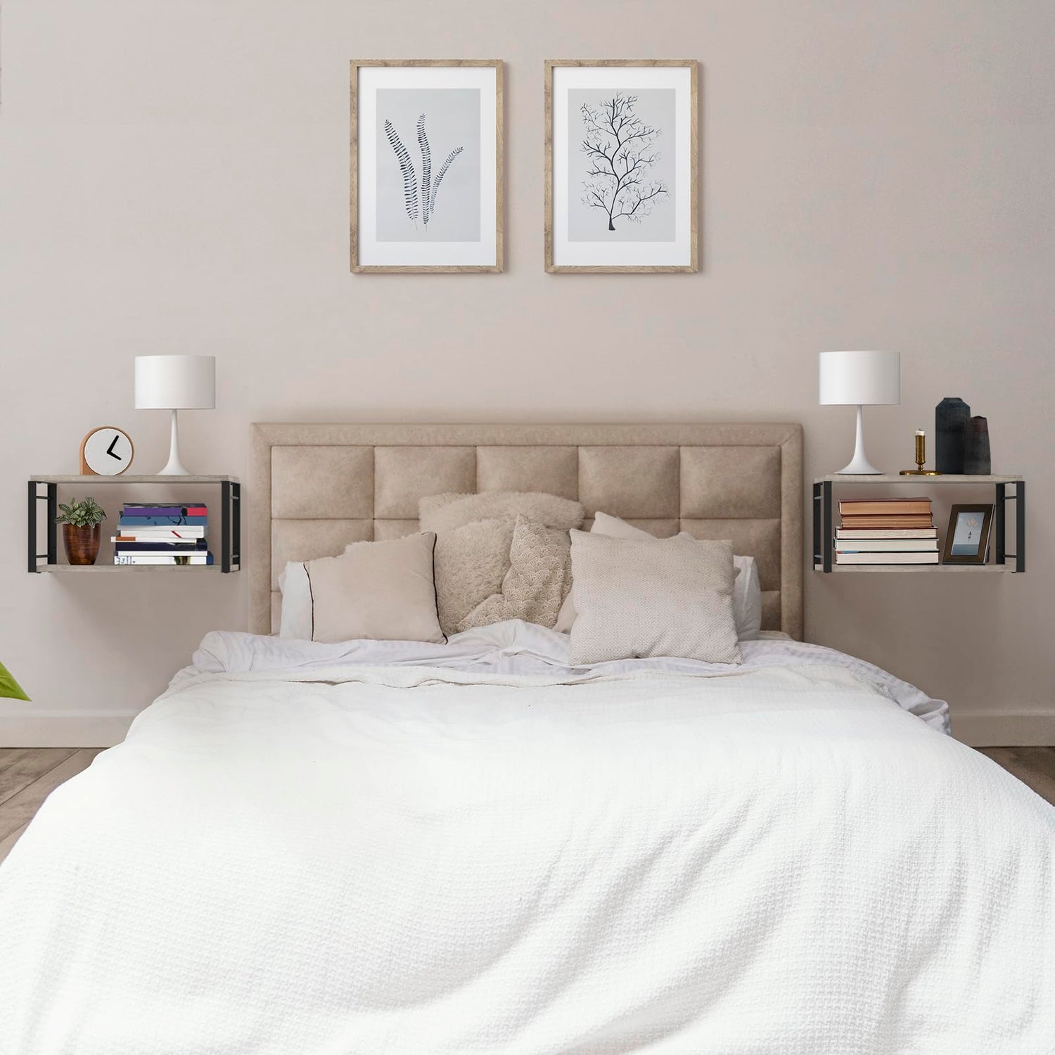 - 【Made with High-quality Materials】This bedside shelf can hold up to 30 lb, because it chooses thickness of 0.1 inch quality metal brackets to support 0.47 inch thick natural solid wood, that's durable enough to use for a long time. Measures with16.0“Lx9.6”W x7.8"H, the floating shelf for bedroom comes with an easy to follow hanging template and all hanging hardware is included for secure wall display.