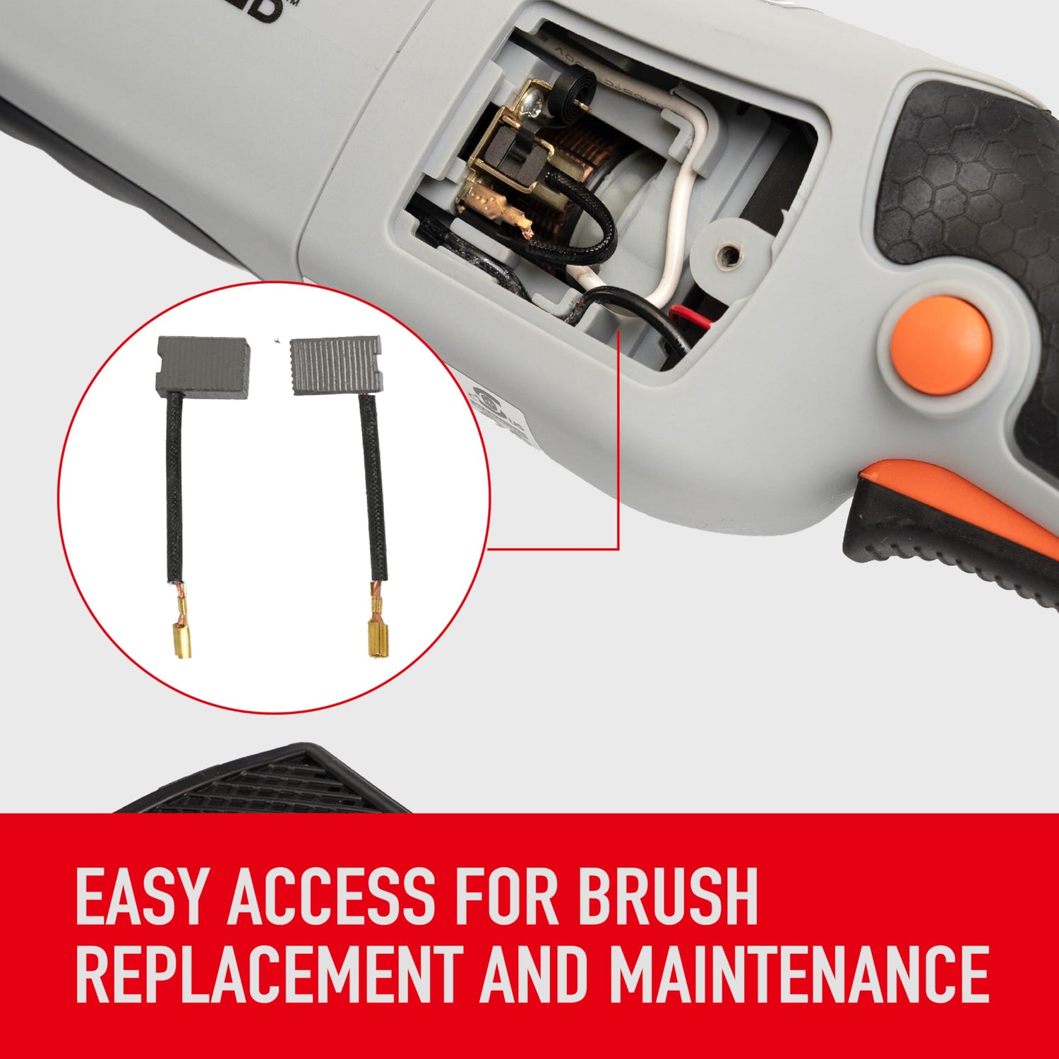 • ✅ User-centric convenience and complete detailing solution: Soft start trigger throttle, extended 13-ft power cord, and included Allen key wrench, replacement carbon brushes, right-angle handle, and D-handle for professional-grade detailing.