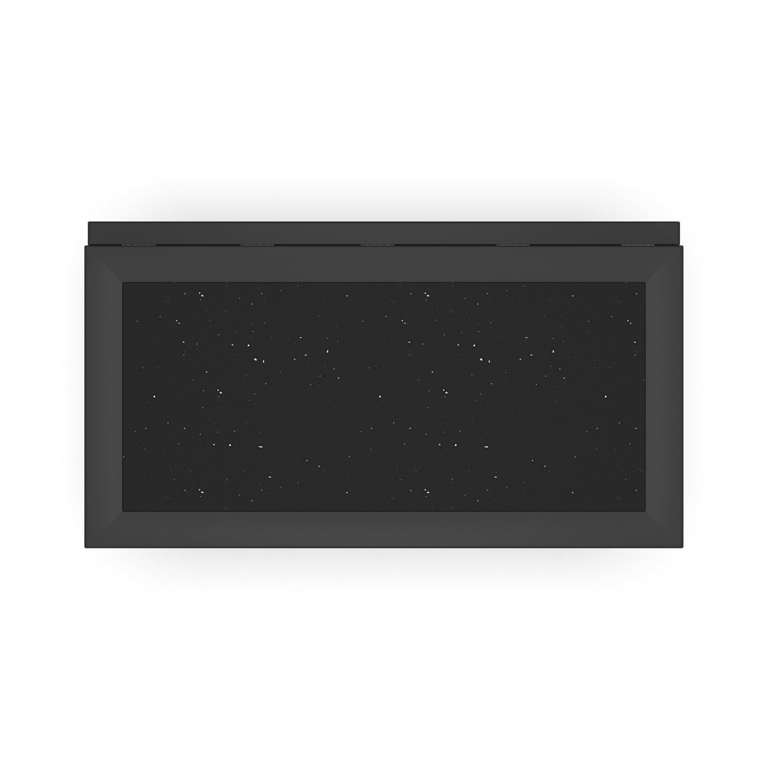 - Made of hardwood solids and engineered woods in a sanded, distressed black finish