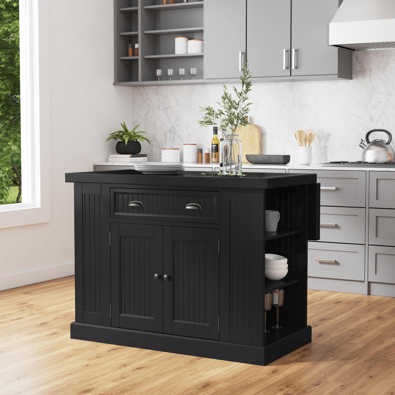 Details: Bring a fresh sea breeze into your kitchen every morning with this Homestyles Nantucket Kitchen Island. With a variety of storage options and an expandable drop leaf, you’ve got everything a kitchen needs in a compact space. The distressed black finish and black granite inset create a classic look that never goes out of style.