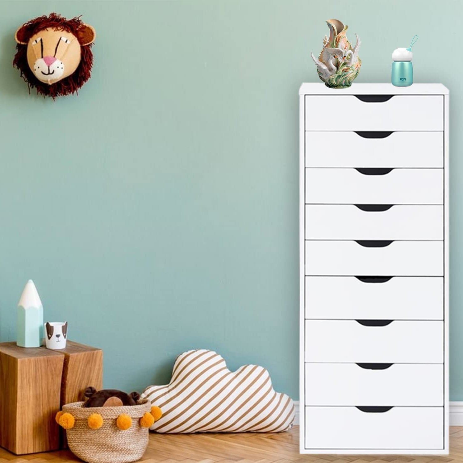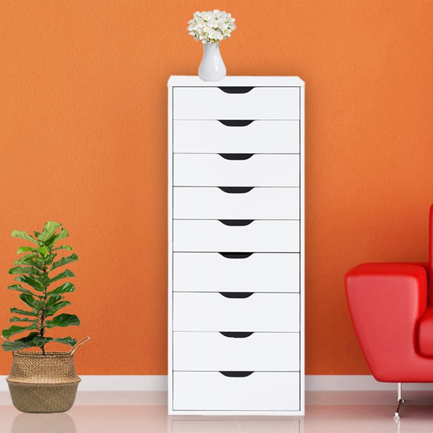 Naomi Home 9 Drawer Dresser for Bedroom, Stylish Tall Makeup Dressers, Storage Shelves, Small Dresser for Closet with 200 lbs Capacity - White