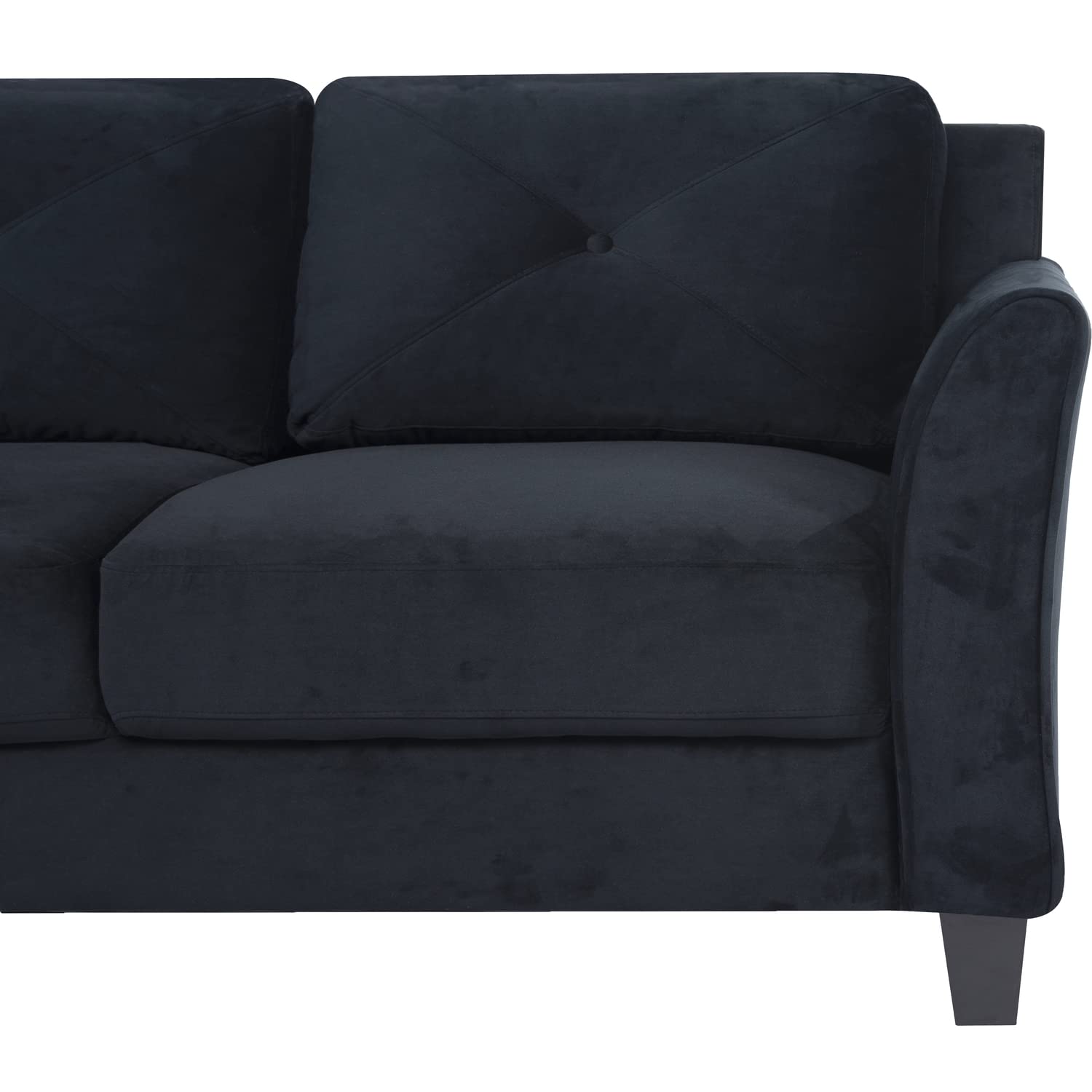- STYLISH DESIGN: Enjoy ultimate comfort with the Raelynn Button Tufted Microfiber Black Sofa and Loveseat. This modern black couch features deep button tufts and padded flared arms for a sophisticated and cozy seating experience, perfect for your living room.