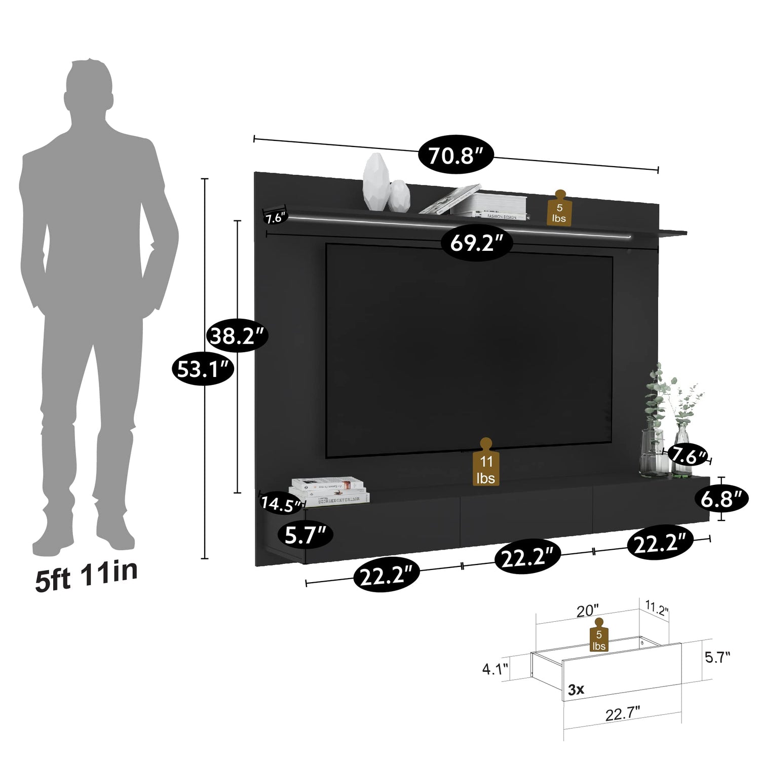- INCREDIBLE VALUE: The combination of features like the TV mount, storage drawers, and LED lighting, along with the price, contributes to the overall value of the floating TV unit.