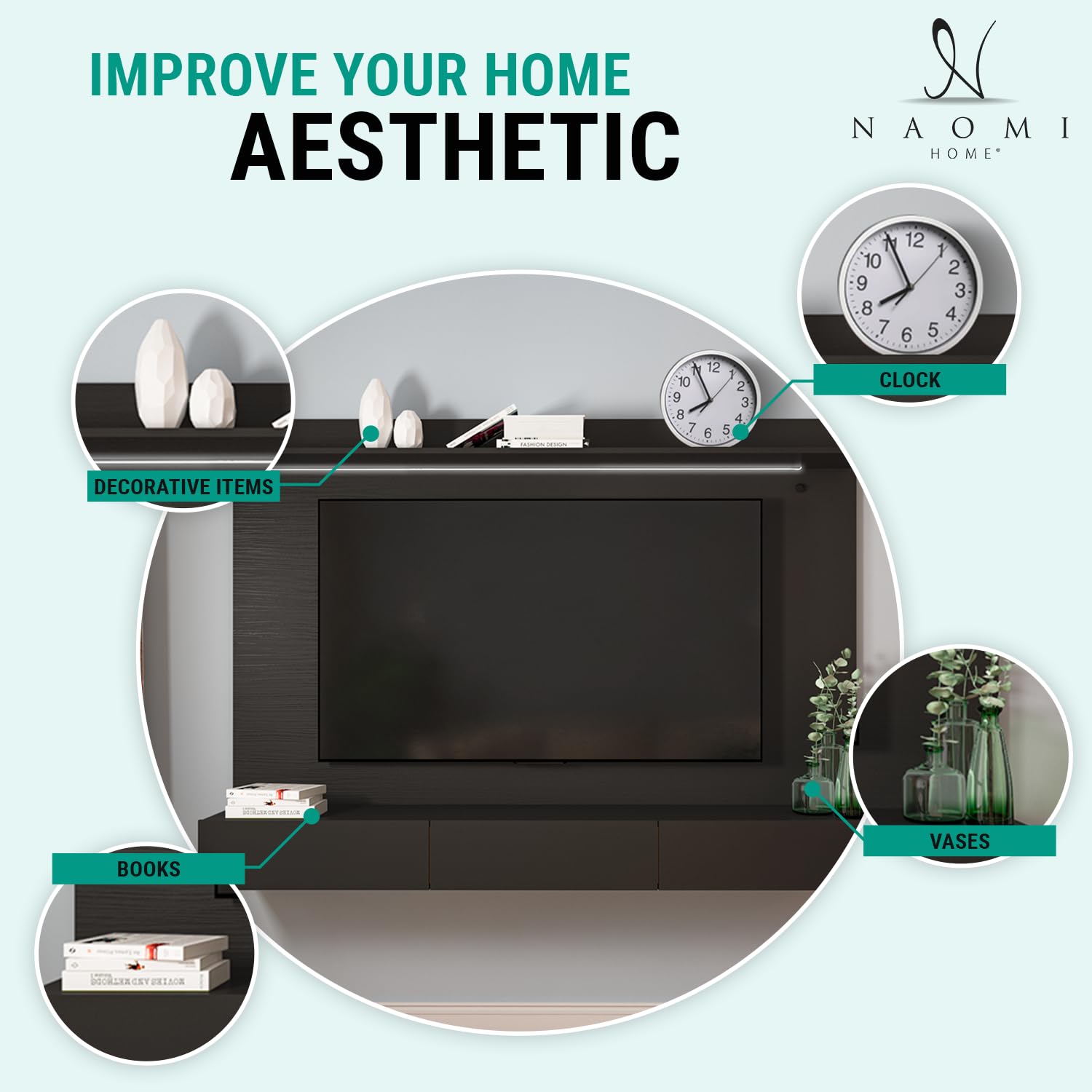 - SAVE SPACE: Wall mounting your TV saves valuable floor space by removing the need for a dedicated TV cabinet. It allows you to have your TV accessories tucked away out of sight – and you can use your remote to control any device thereon using our entertainment center wall unit.