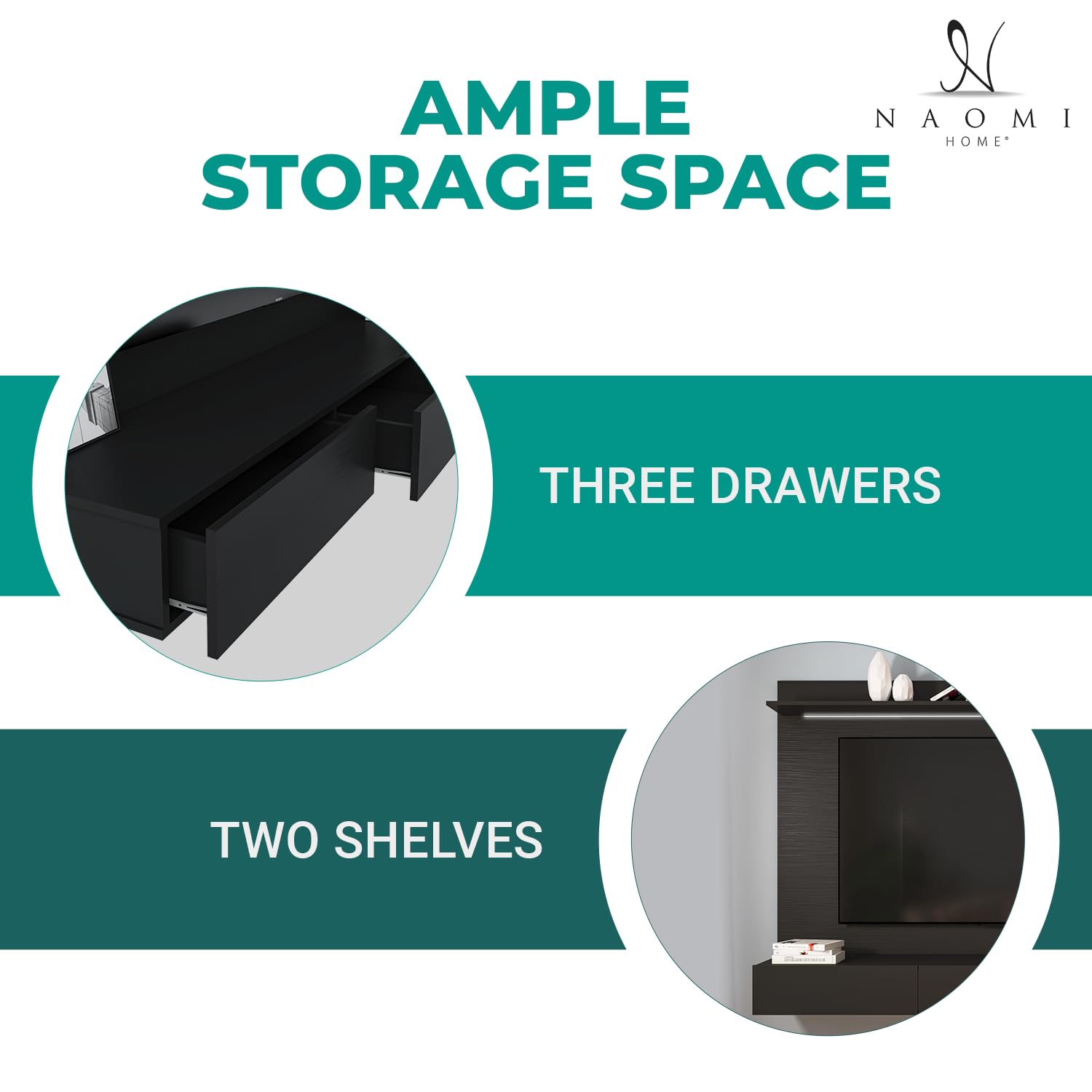 - AMPLE STORAGE SPACE: The wall entertainment center has a lot of storage space, with three drawers and two shelves. This is great for storing movies, games, and other entertainment items.