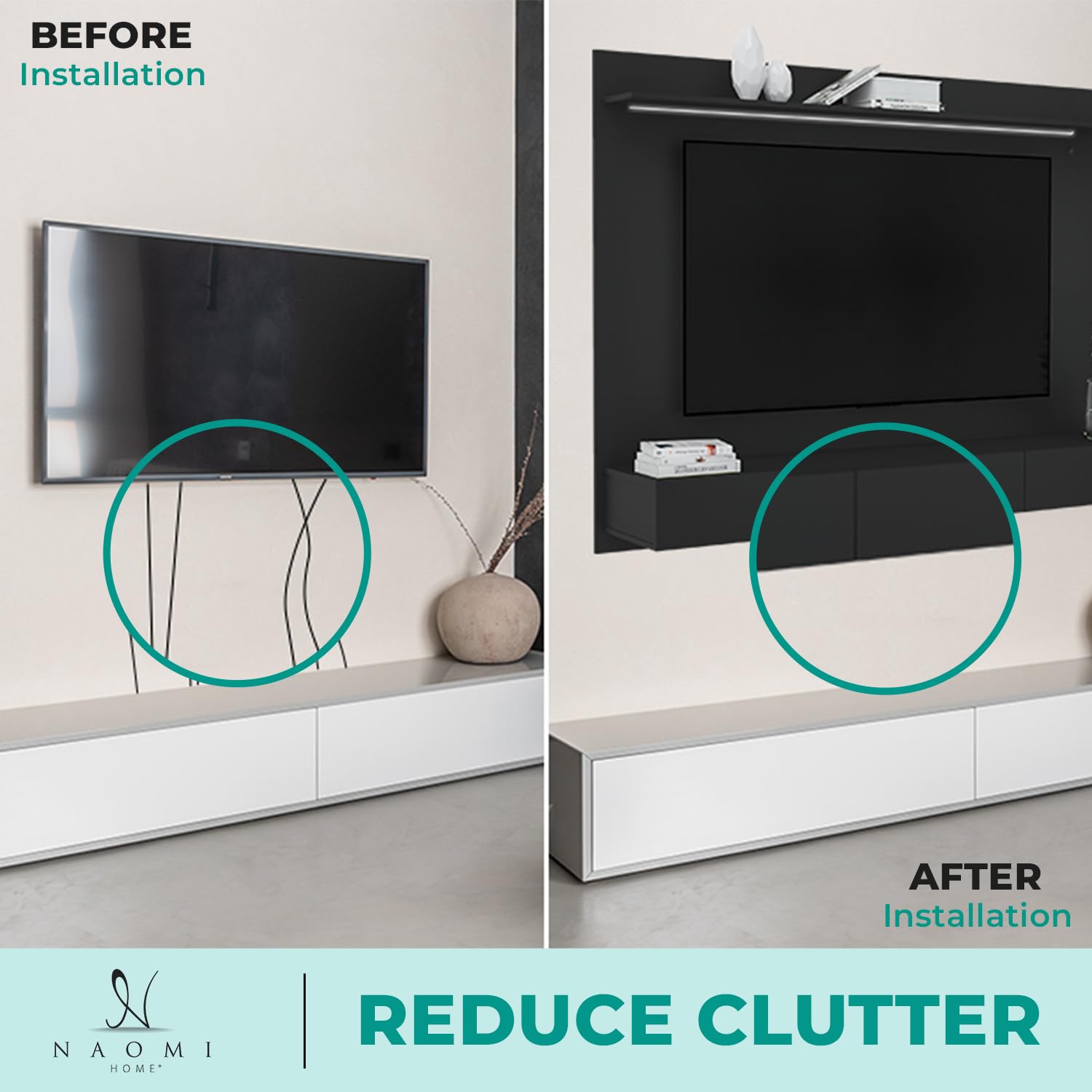 - REDUCE CLUTTER: Into that sleek, minimalist look? When you mount your TV on a wall, all your cables are run through the wall cavity. This reduces visual clutter, as well as tripping hazards and unsightly messes of cables behind the TV.