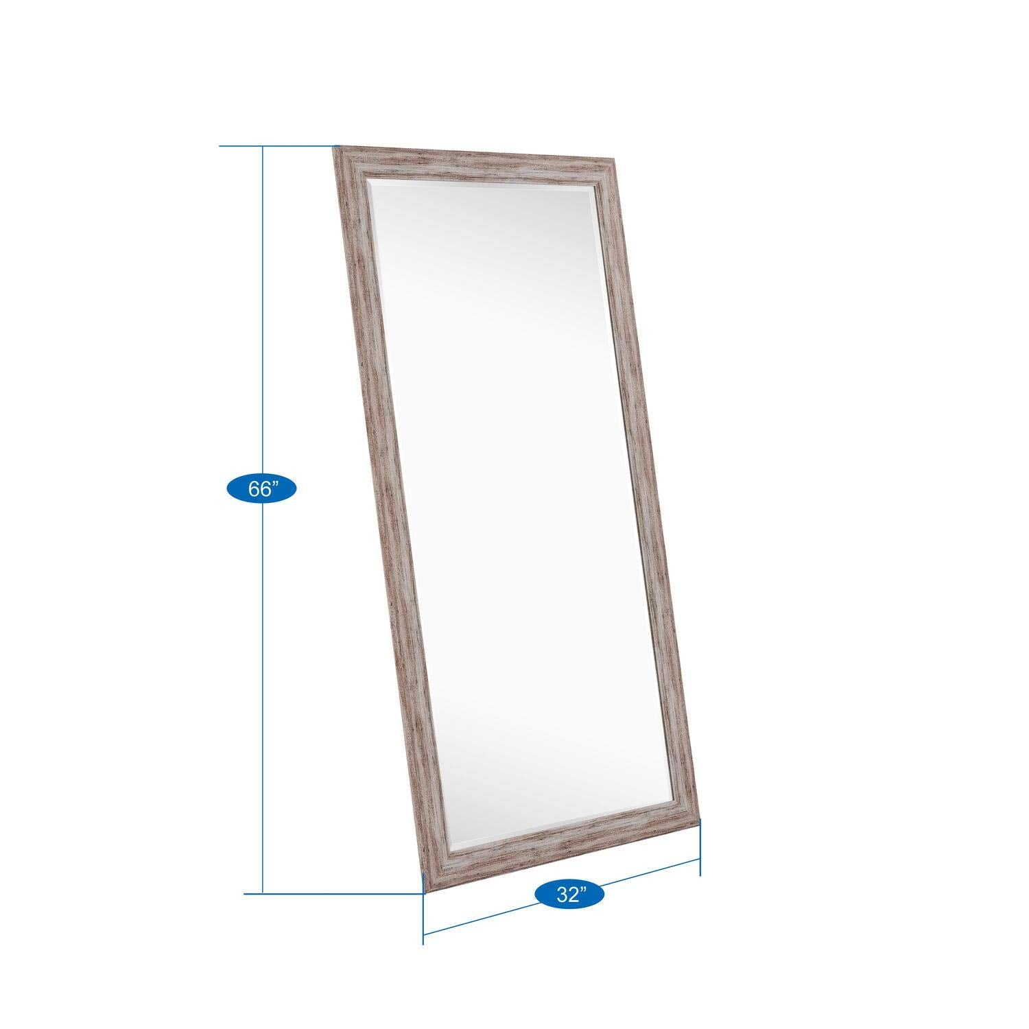 - Premium Craftsmanship: The Rustic Full-Length Mirror, sized 66" x 32", is crafted with a premium wood mirror frame that brings timeless elegance to any space. This full-length mirror wood frame can be wall-mounted or used as a large standing mirror on the floor. Its durable construction ensures stability, whether it’s leaning as a rustic wood mirror or mounted. The 2" thick glass offers clear reflections for a perfect rustic mirror full length look.