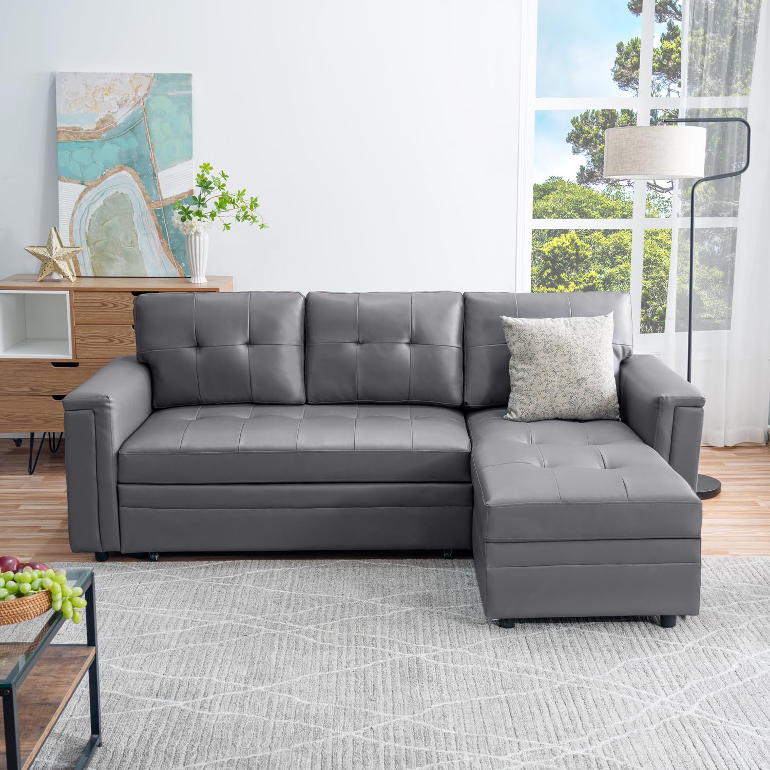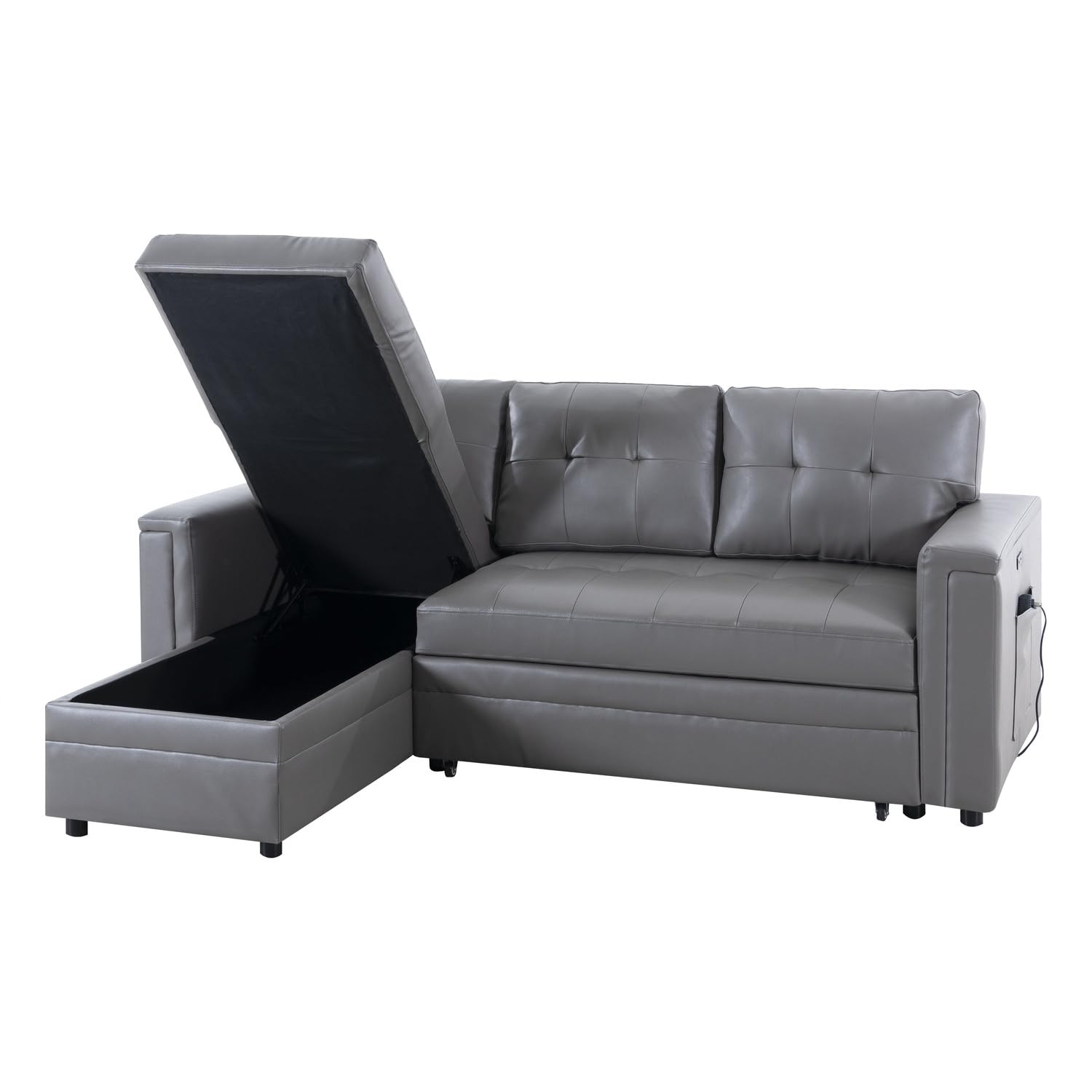 Naomi Home L-Shaped Sectional Sleeper Sofa with USB Ports - Convertible Pull-Out Bed, Ample Storage, Timeless Design, Durable Construction, Gray/Air Leather