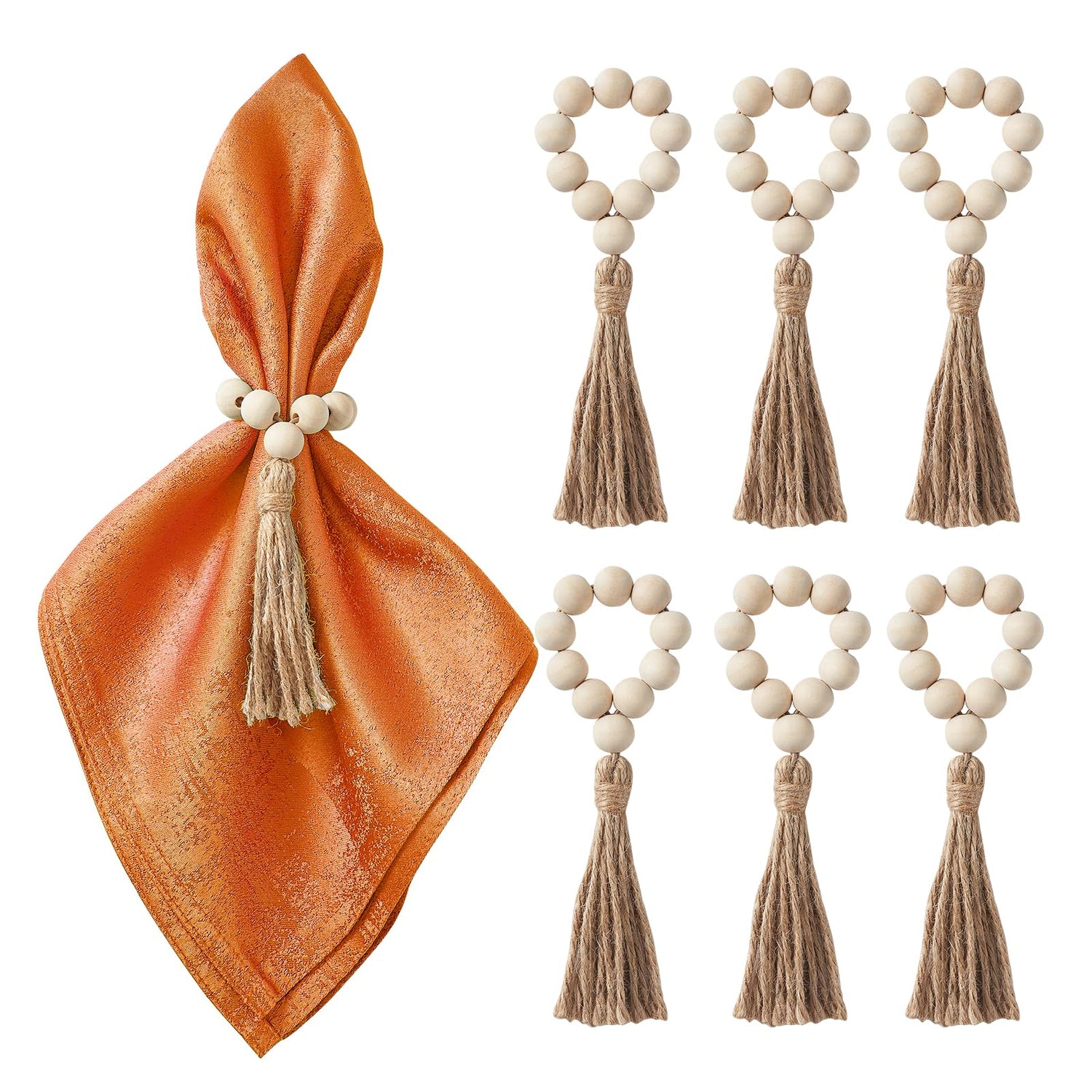 - Exquisite Table Decorations - You will receive Fall Thanksgiving table decor wooden napkin rings set of 6. Each Fall Thanksgiving napkin rings measures approximately 6.1 inches/15.5cm in length, featuring 10 beads. The tassel length is about 3.53 inches/9cm, providing a suitable size that accommodates most Fall Thanksgiving cloth napkins. With an abundant quantity in each set and caters to a lot of your styling needs. Elevate your table aesthetics with these exquisite table decorations!