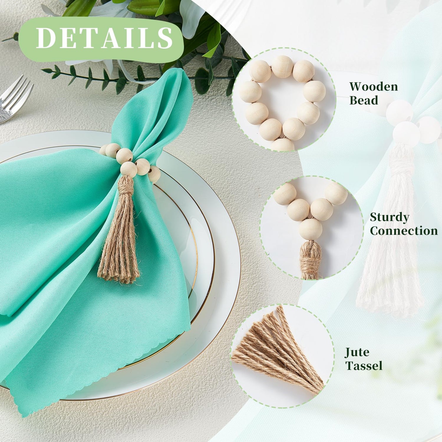 - Spring Table Magic Unleashed - Revamp your spring table decor with these versatile wonders – don't limit them to just spring napkins! Let these elastic wood napkin rings with delightful tassels work their charm as they become enchanting embellishments for red wine bottles, poised on vases, harmonizing with boho placemats, or gracing your tableware knives. Embrace the lively essence of spring in any setting, infusing everyday moments with a burst of lively style and the essence of the season!