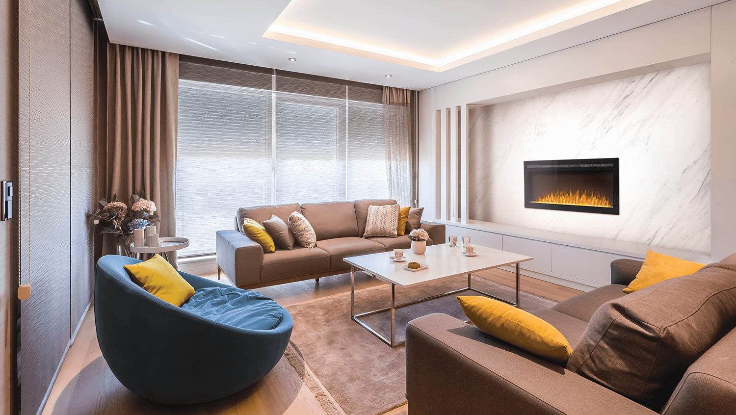 - SEE THE FIREPLACE, NOT THE FRAME: The black, nearly frameless finish surrounding this modern, linear, electric fireplace creates a minimalist look that doesn't interfere with your décor, instead it enhances the fire aspect of the fireplace