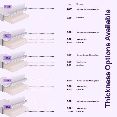 NapQueen 8 Inch Twin-XL Size Mattress, Bamboo Charcoal Memory Foam Mattress, Bed in a Box, White