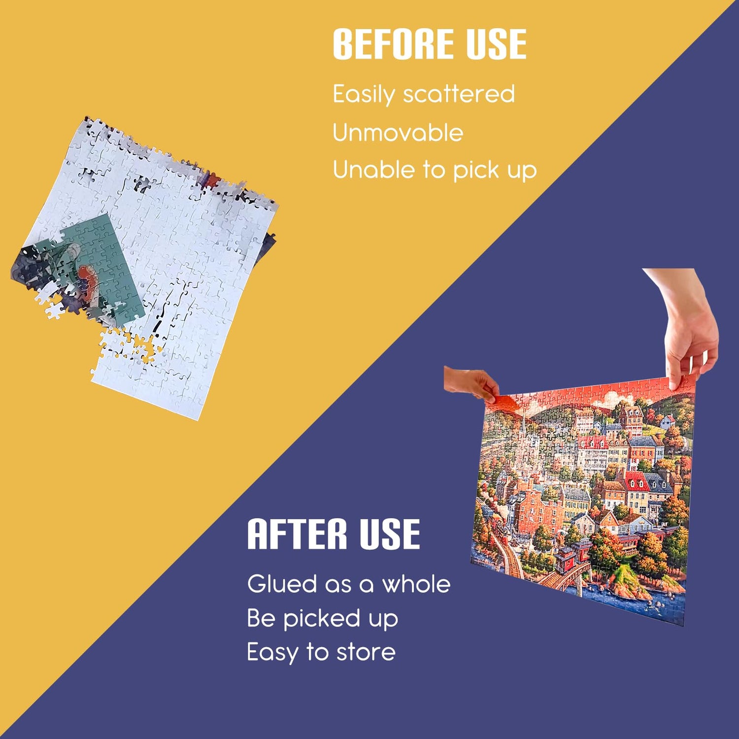 - 【Enhance Your Puzzle】The puzzle glue transforms into a clear protective layer upon drying. Not only does this layer showcase your puzzle's pattern vividly, but it also imparts a smoother, shinier finish to your masterpiece.