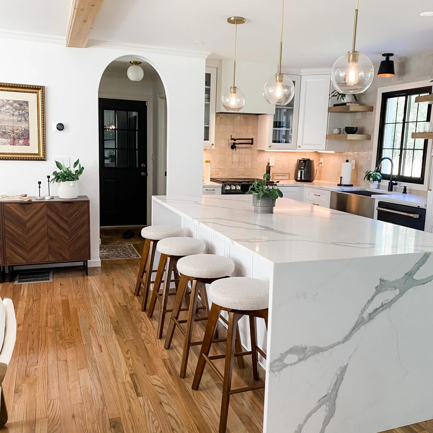 - This solid wood stool is the perfect height for a kitchen island, bar, counter, or tall table.