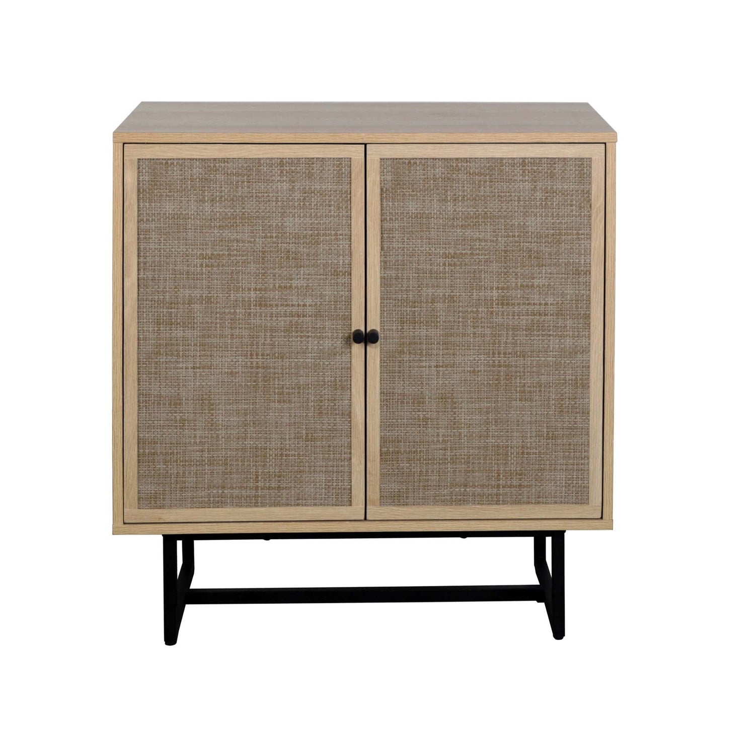 Details: Kova is a beautiful hideaway storage cabinet piece that blends effortlessly in any room. The natural palette of this accent cabinet consists of light oak wood and rattan cane door fronts for a boho-chic accent piece. The sideboard features modern matte black metal legs with footpads attached to keep your floors from being scratched. With two cane swinging doors, this cabinet offers plenty of hidden storage and enough space to keep your home clutter-free, plus, you can adjust the shelves in the storage cabinet for the perfect amount of space.