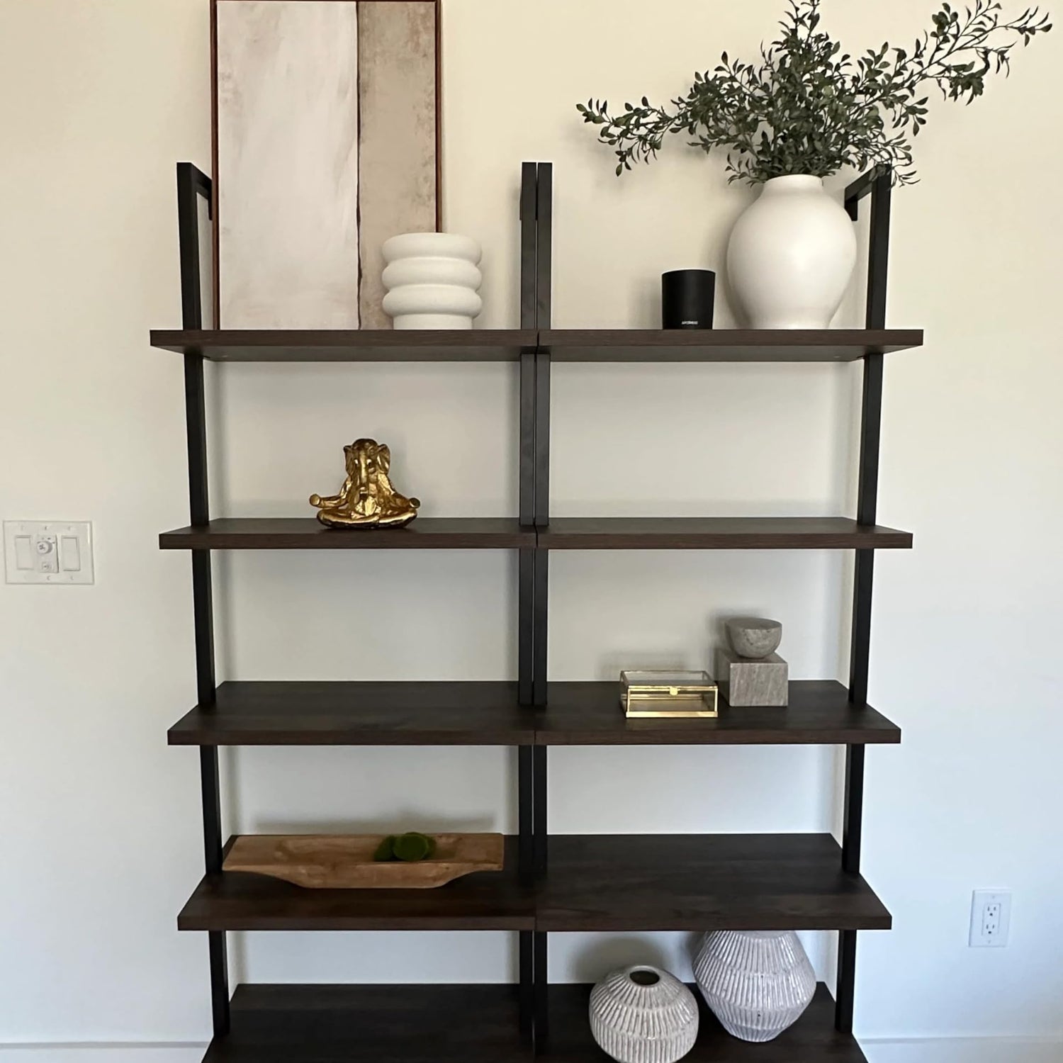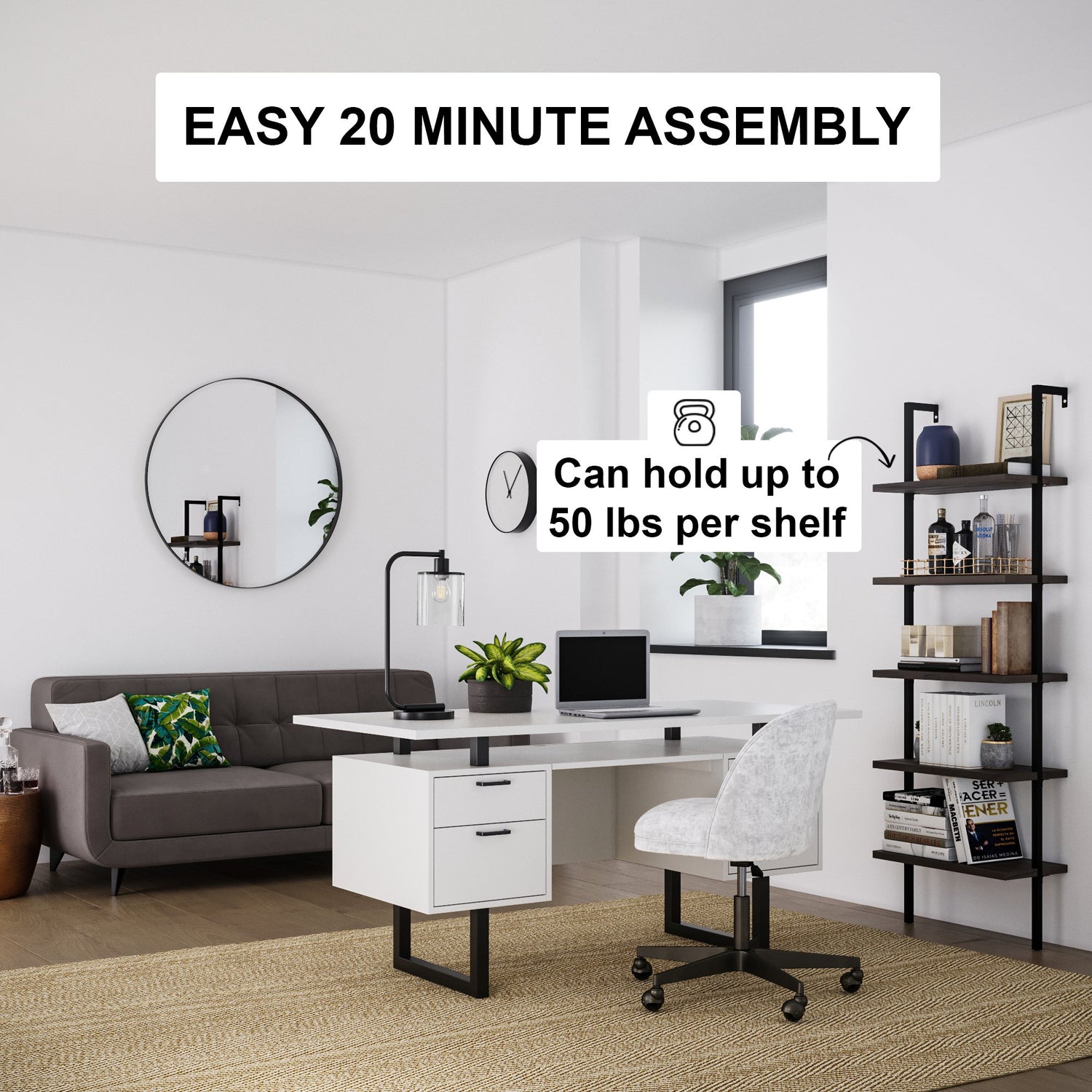 Our elegant 5-tier bookcase has a minimalist style that can fit your home office or living room. The open-shelving structure will add visual space to your small apartment. It features an easy-to-assemble design you can mount to any wall.