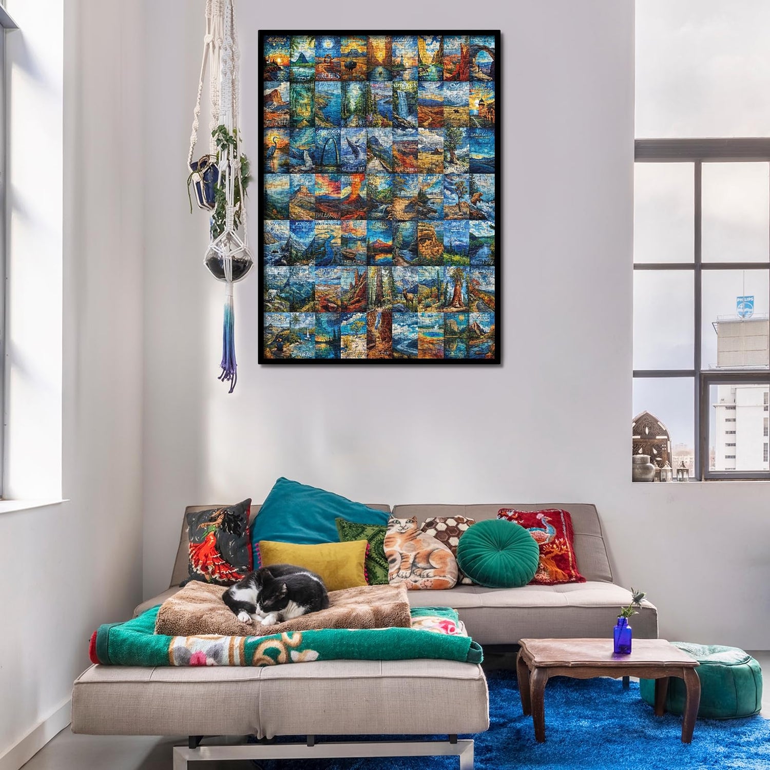 National Parks Puzzle Art Puzzles for Adults 1000 Pieces, Painting Jigsaw Puzzles Van Gogh National Park Puzzles, Volcano Yellowstone Travel Puzzles for Adults Scenery Puzzle