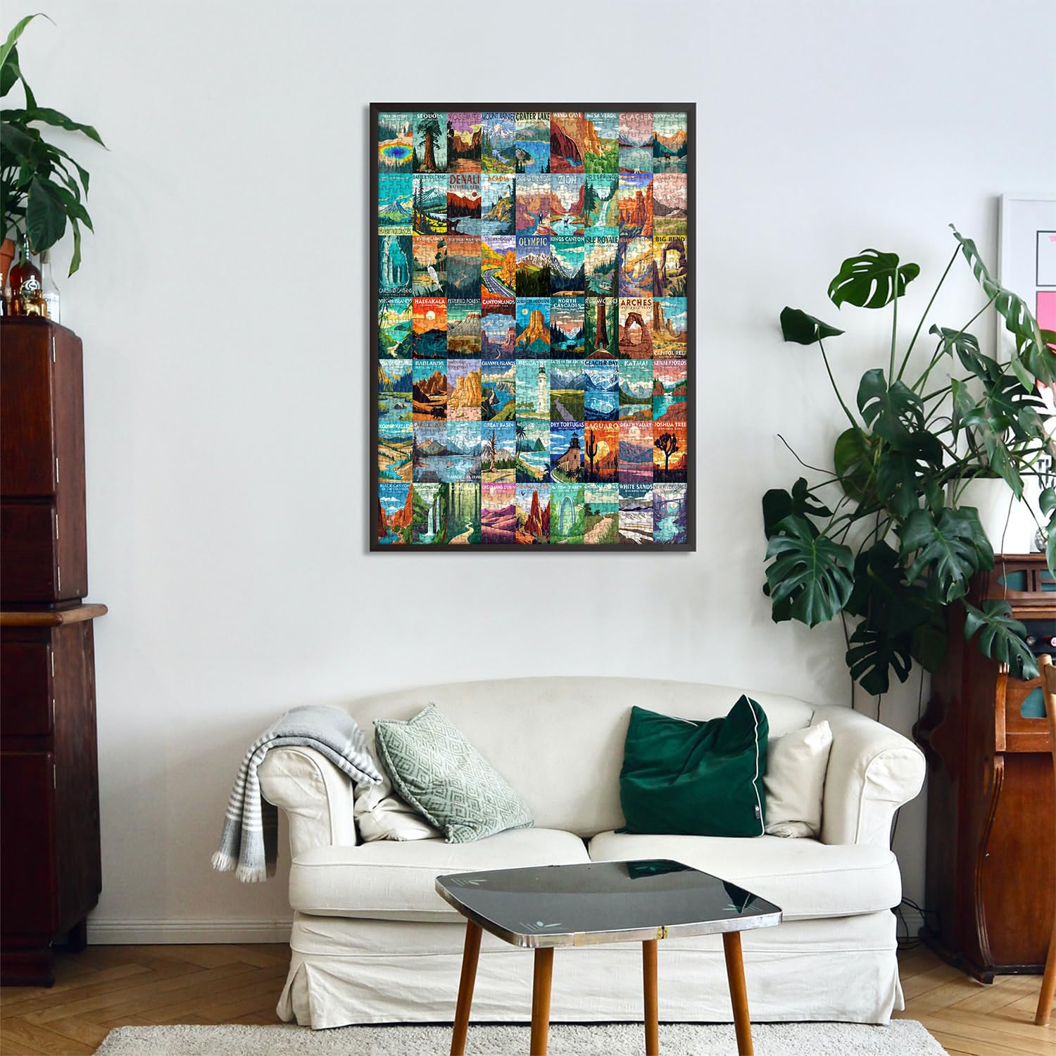 National Parks Puzzle for Adults 1000 Pieces, Travel Poster Landscape Puzzle Including Zion Yellowstone Yosemite, Nature Jigsaw Puzzles Scenery Mountain Scene