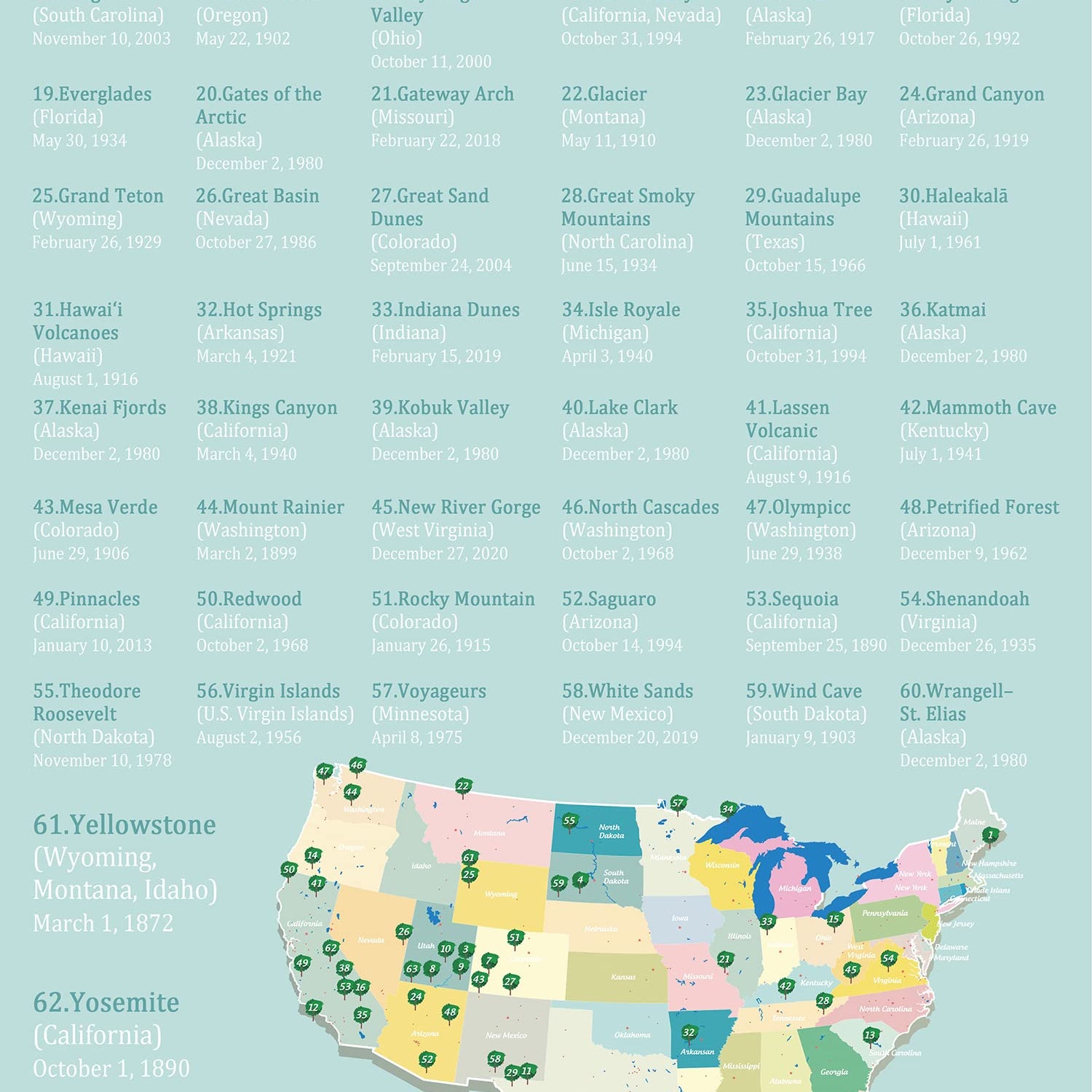 - Size: 27.5*19.7 in / 70*50 cm .National parks jigsaw puzzle with exquisite packing box and a double-sided poster. The front of poster helps you complete the landscape puzzles and the back show the US national parks map