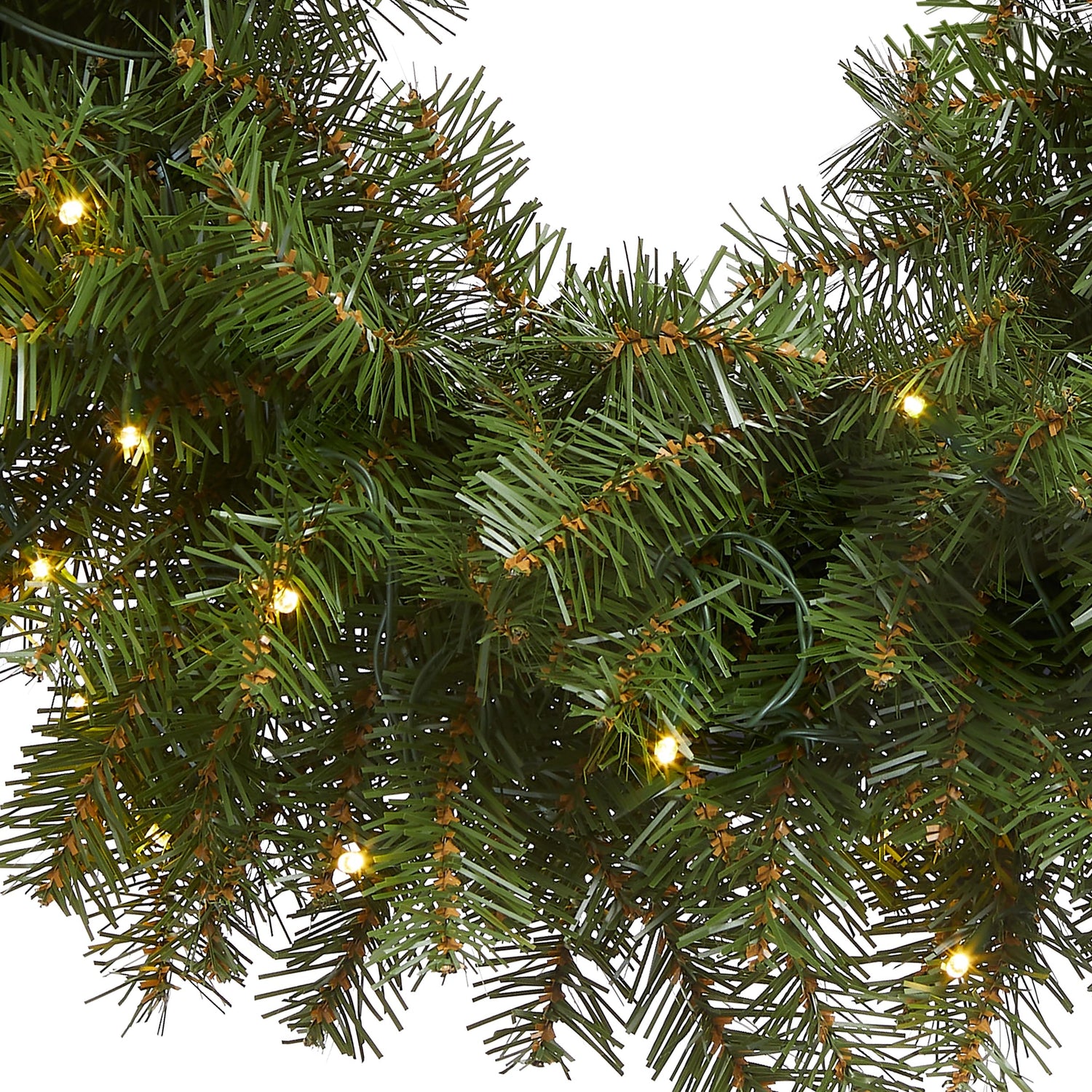 Details: Transform your home for the winter holidays with National Tree Company's Pre-Lit Artificial Christmas Wreath Decoration. Designed with a Norwood Fir branch base, this hanging wreath is 30 inches wide. Hundreds of crush-resistant polyethylene tips form full bodied branches to create a hanging wreath with remarkable realism. This fantastically festive wreath decoration is strung with white LED lights prior to packaging for a more convenient setup. The lights operate individually, so if the bulb lens has not been cracked or broken, the light set will continue to illuminate except for any individual bulbs that are not working. To power the lights, simply place three AA batteries into the battery pack and let the pre strung lights illuminate your home with the warmth and cheer of the holiday season. Hang this decorative wreath on any door, window or mantle to bring a Christmas ambience into any room or covered porch. Constructed with sturdy, high quality materials and hypo-allergenic, fire-resistant needles, this wreath is built to bring holiday cheer for years to come. This hanging decoration is suitable for both indoor and covered outdoor use. At National Tree Company, we strive to create high quality Christmas decorations to help you transform your home so you can keep making every holiday moment magical.