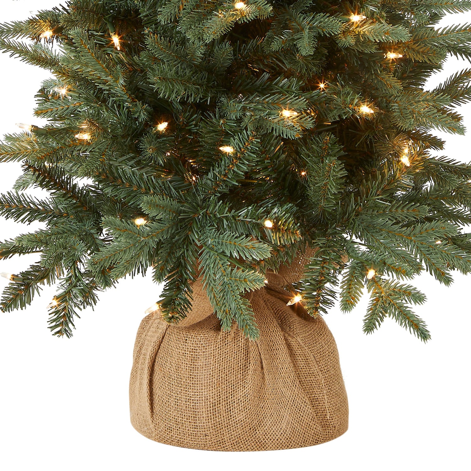 National Tree Company Pre-lit Artificial Mini Christmas Tree | Includes Small Lights and Cloth Bag Base | for Tabletop or Desk | Burlap-4 ft, 4', Green