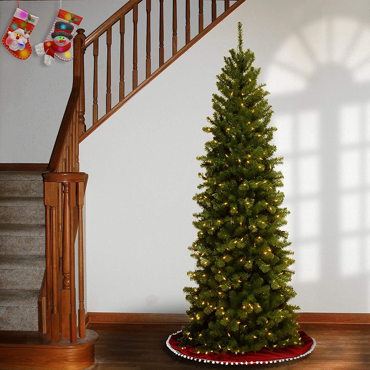National Tree Company Pre-Lit Artificial Slim Christmas Tree, Green, North Valley Spruce, White Lights, Includes Stand, 6 Feet