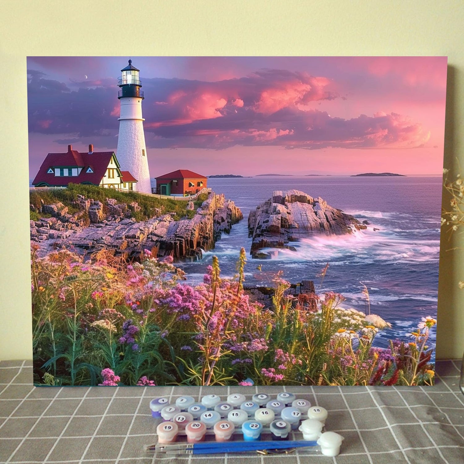 Native America Lighthouse Paint by Numbers Kits 16x20 inch Canvas Atlantic Ocean Scenery DIY Oil Painting for Kids, Adults Beginner Tropical Seascape Artwork with Brushes, Girl Boy Gift(Frameless)