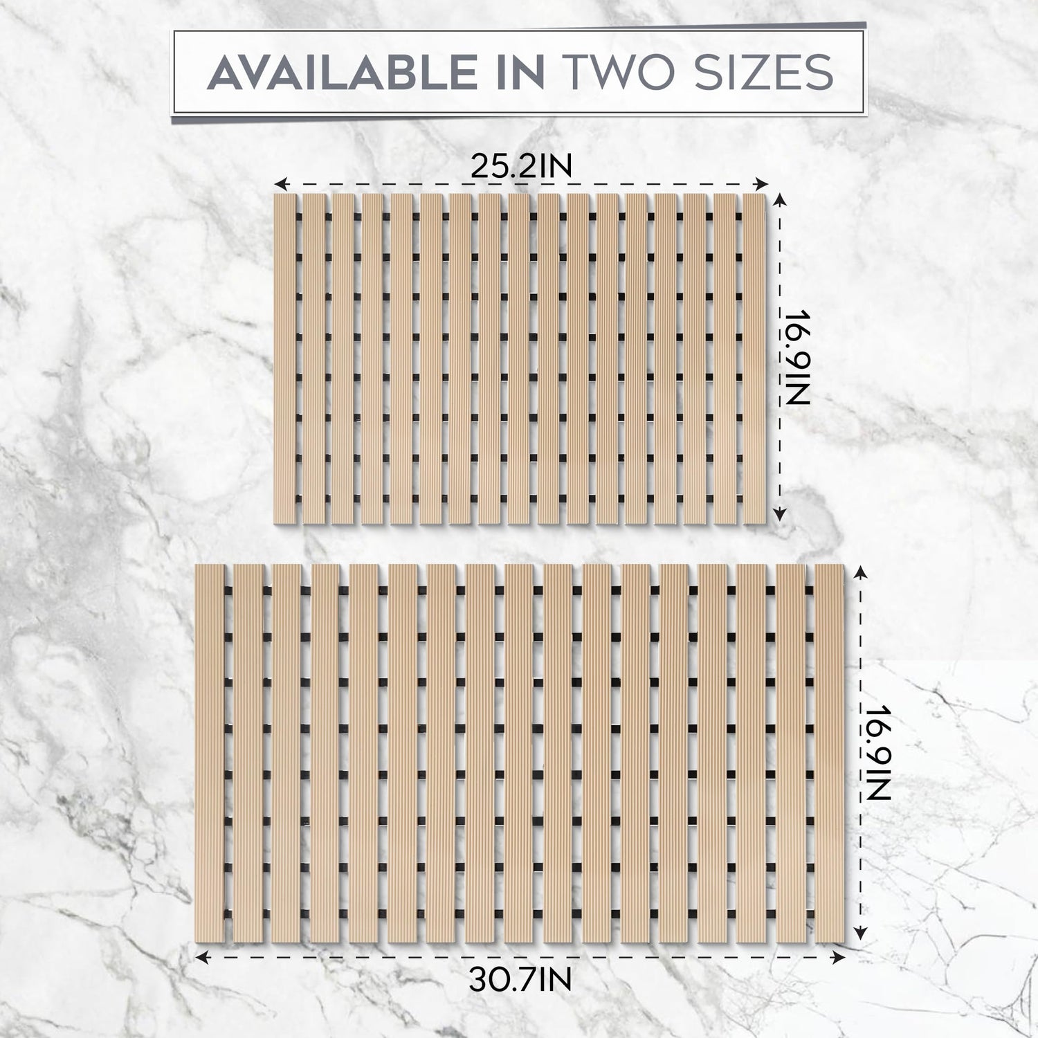 NativeSkins Faux Bamboo Bath Mat, Non-Slip Safety Lining, Bamboo Shower Mat, Waterproof, Quick-Drying, Mat for Spa, Sauna, Bamboo Mat, Teak Bath mat - Large 16.9 x 30.7 in
