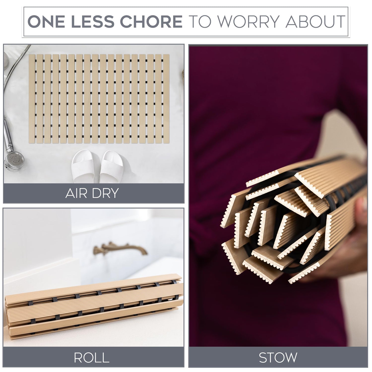 - Eco-friendly design: Enjoy a sustainable and stylish bamboo shower mat for inside your shower that actually stands the test of time unlike true wooden mats.