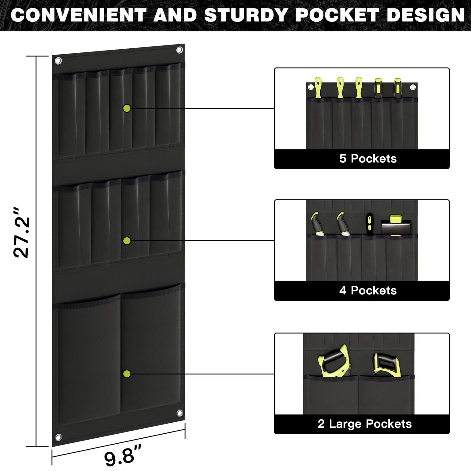 - Convenient Side Pockets for Small Tools – Equipped with side pockets of various sizes, this tool organizer and storage solution keeps your smaller tools, like hammers and screwdrivers, neatly organized and easy to grab