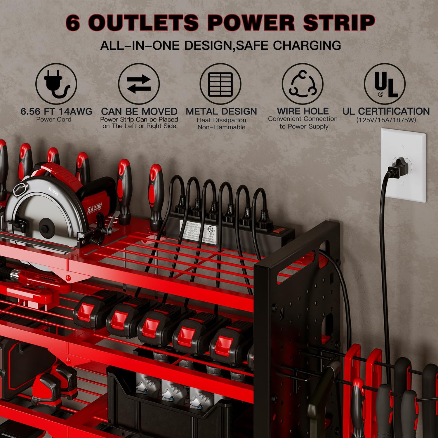 - Smart Charging Solution: Equipped with a UL-certified 6-outlet power strip, provides a safe and efficient charging station for your power tool batteries