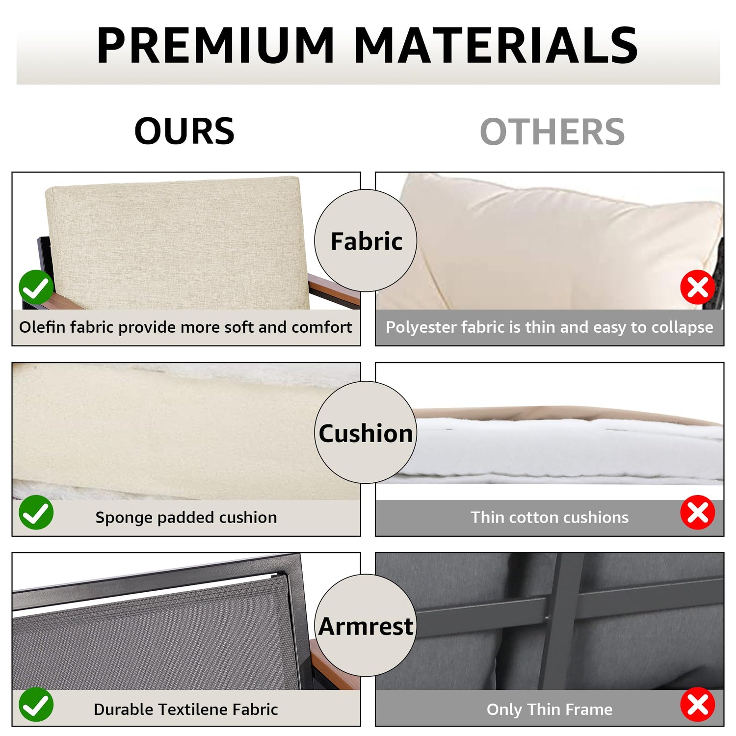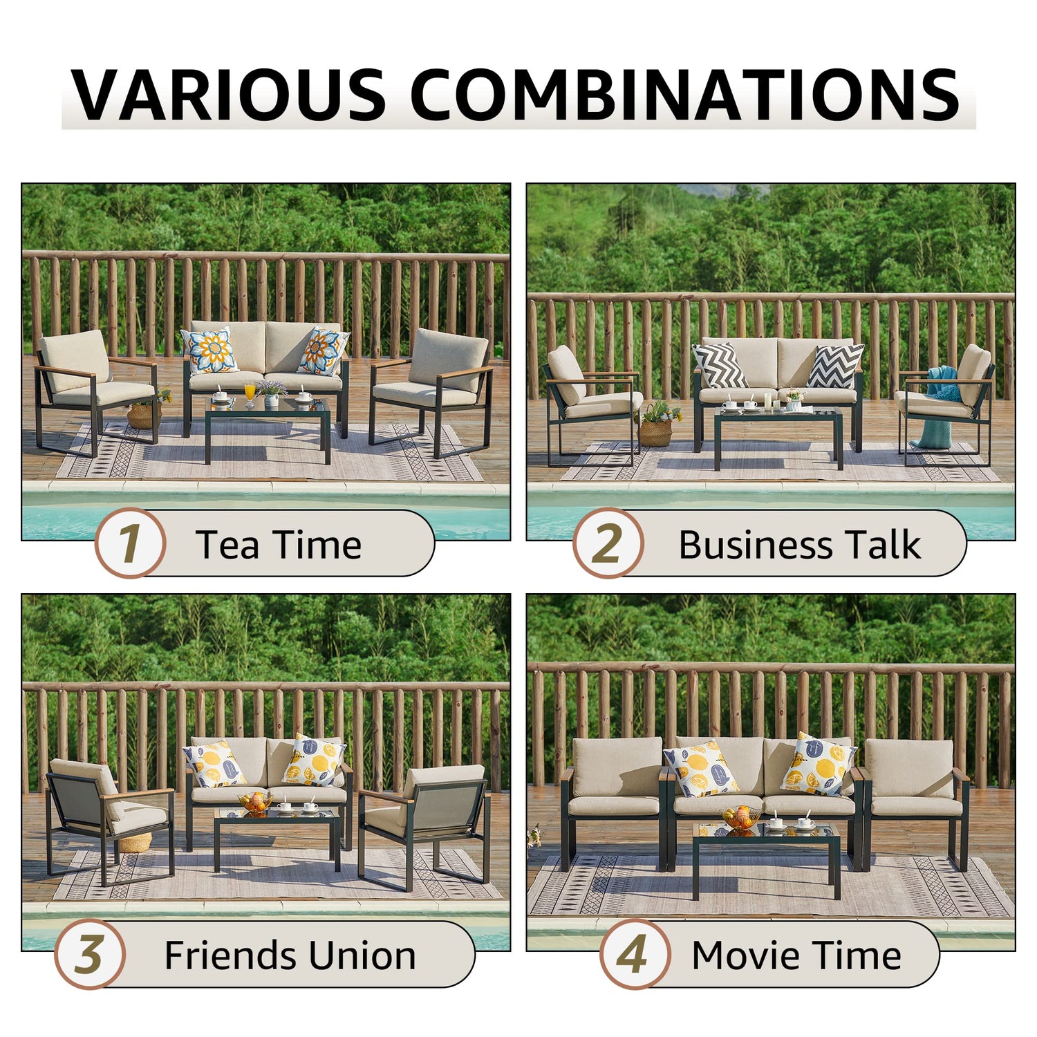 NATURAL EXPRESSIONS 4 Pieces Patio Furniture Sets,Metal Outdoor Patio Furniture Sets,Outdoor Sectional Furniture Patio Conversation Set,Wooden Anti-Scald Armrest,Sling Mesh,4" Olefin Cushions