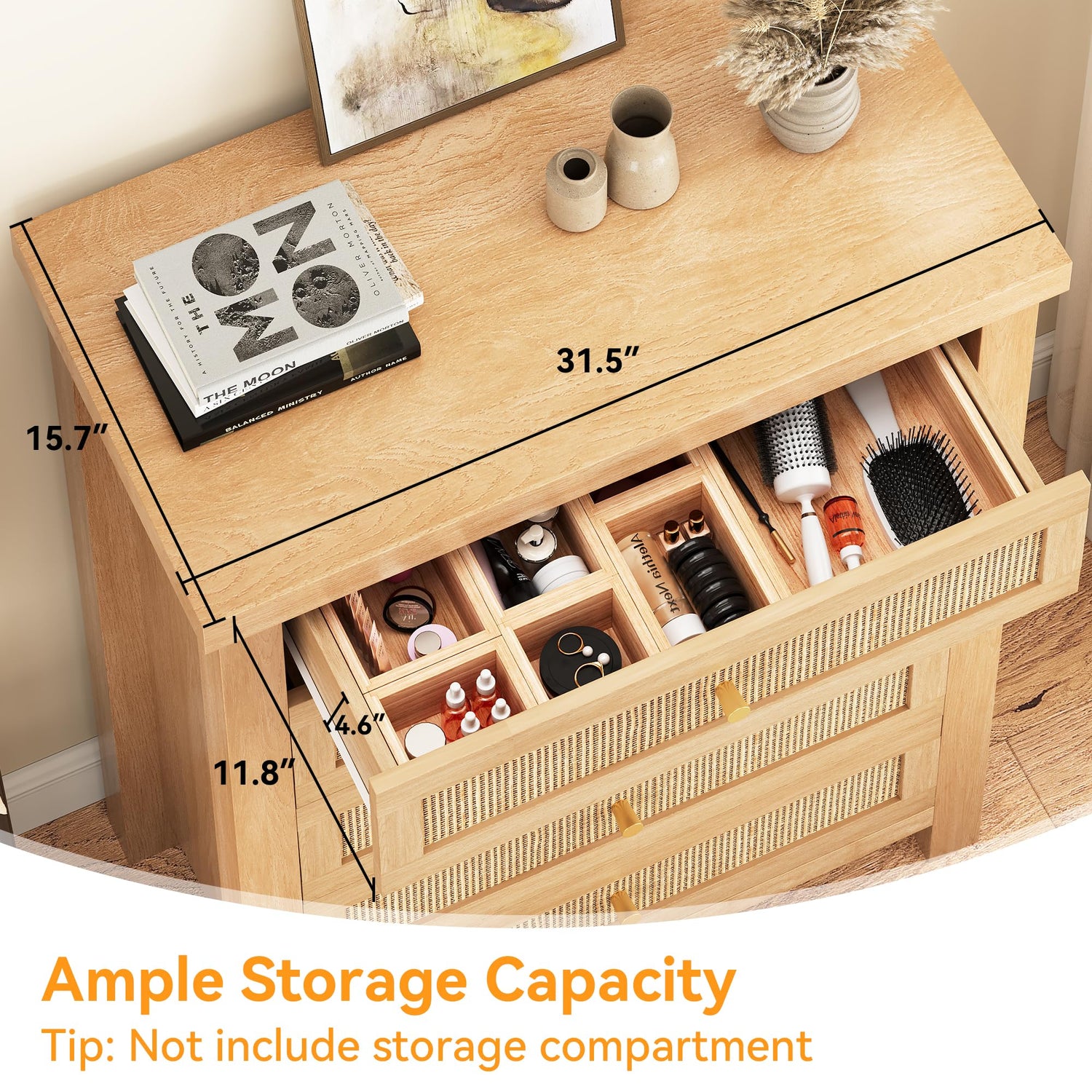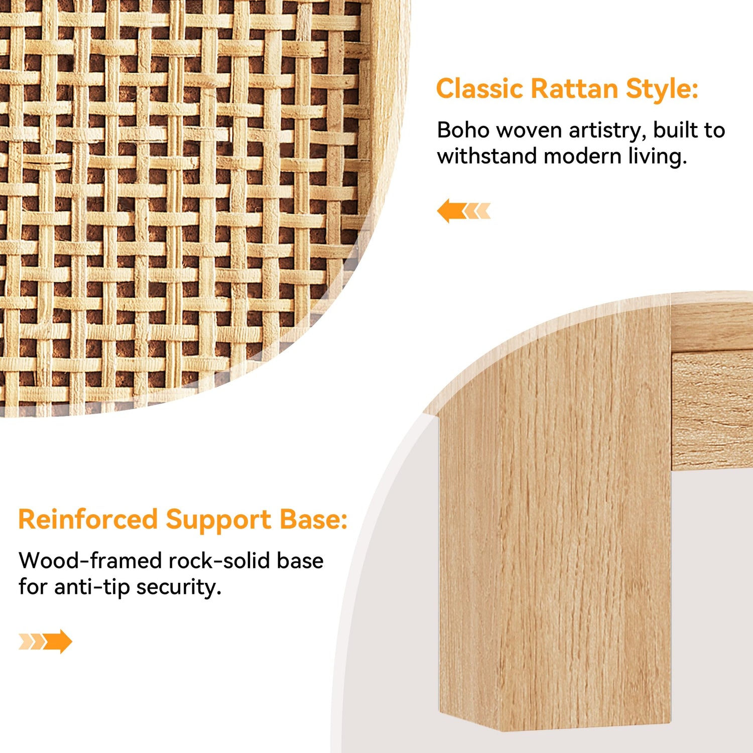 - 【Real Natural Handmade Rattan】Inspired by timeless boho style, the handwoven natural rattan front adds natural texture and warm, earthy charm to your dresser. The clean-lined recessed base paired with sleek metal knob pulls strikes the perfect balance between casual appeal and modern functionality. Gentle light filters through the woven pattern, creating a relaxed ambiance in your space.