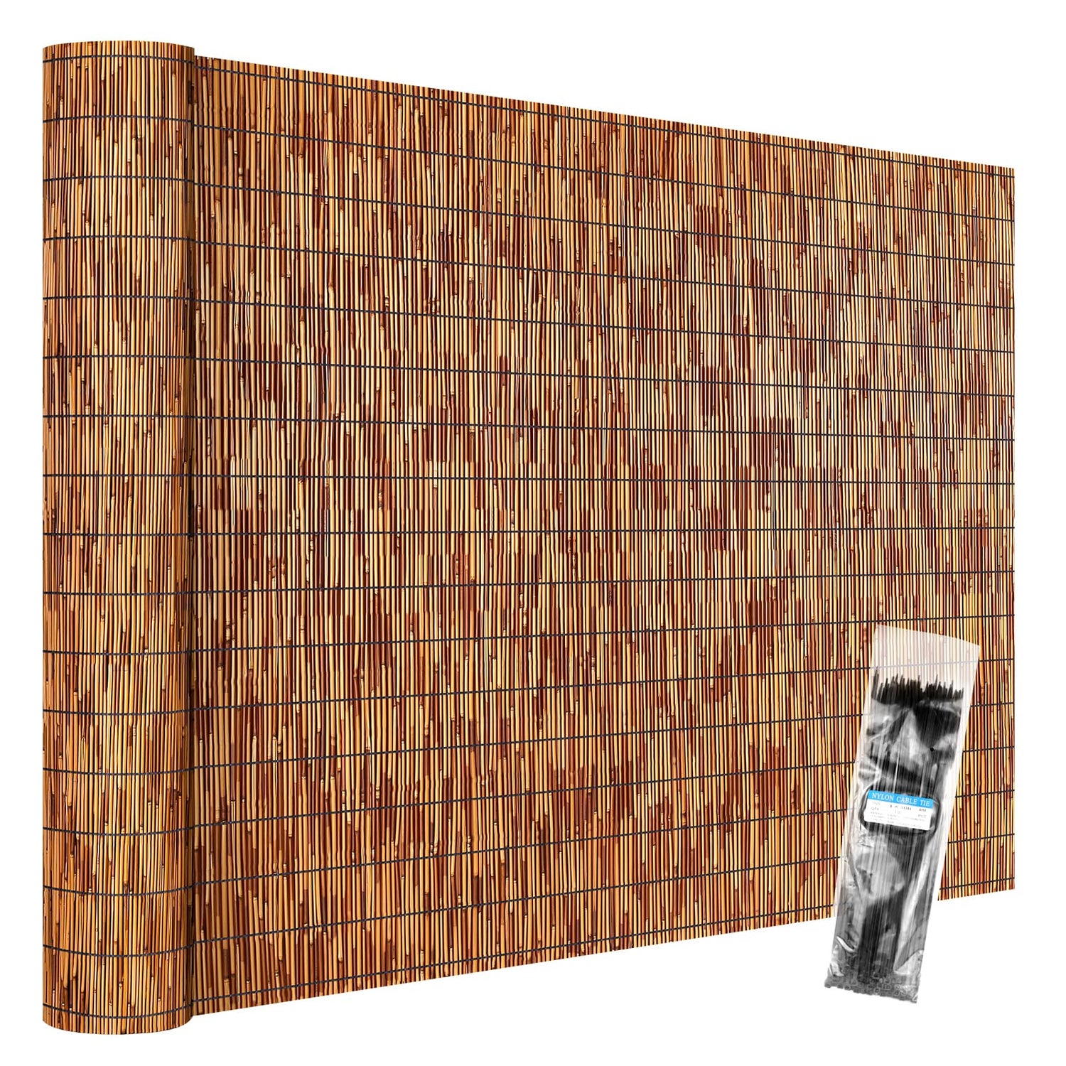 - 【EASY TO INSTALL】- Attach this garden fence rolls to any old chain link, wire/wooden fence, railings or other fence types with cable ties. Package includes 1 reed rolls and 100 zip ties (Size:16.4ft x 6ft)