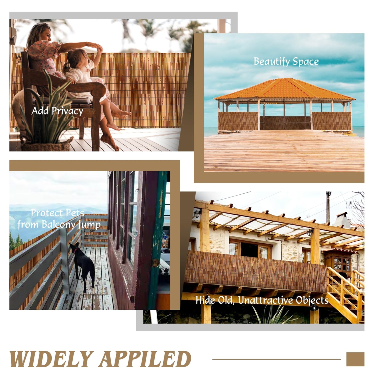 - 【1-PACK MULTI-FUNCTIONAL REED FENCING】- This set has 1 pack reed . Use them to hide unattractive objects or old fence, add more privacy, provide shade to your balcony/patio, stop pets from jumping from balcony, adorn swimming pool, giving a rustic and natural look to your space