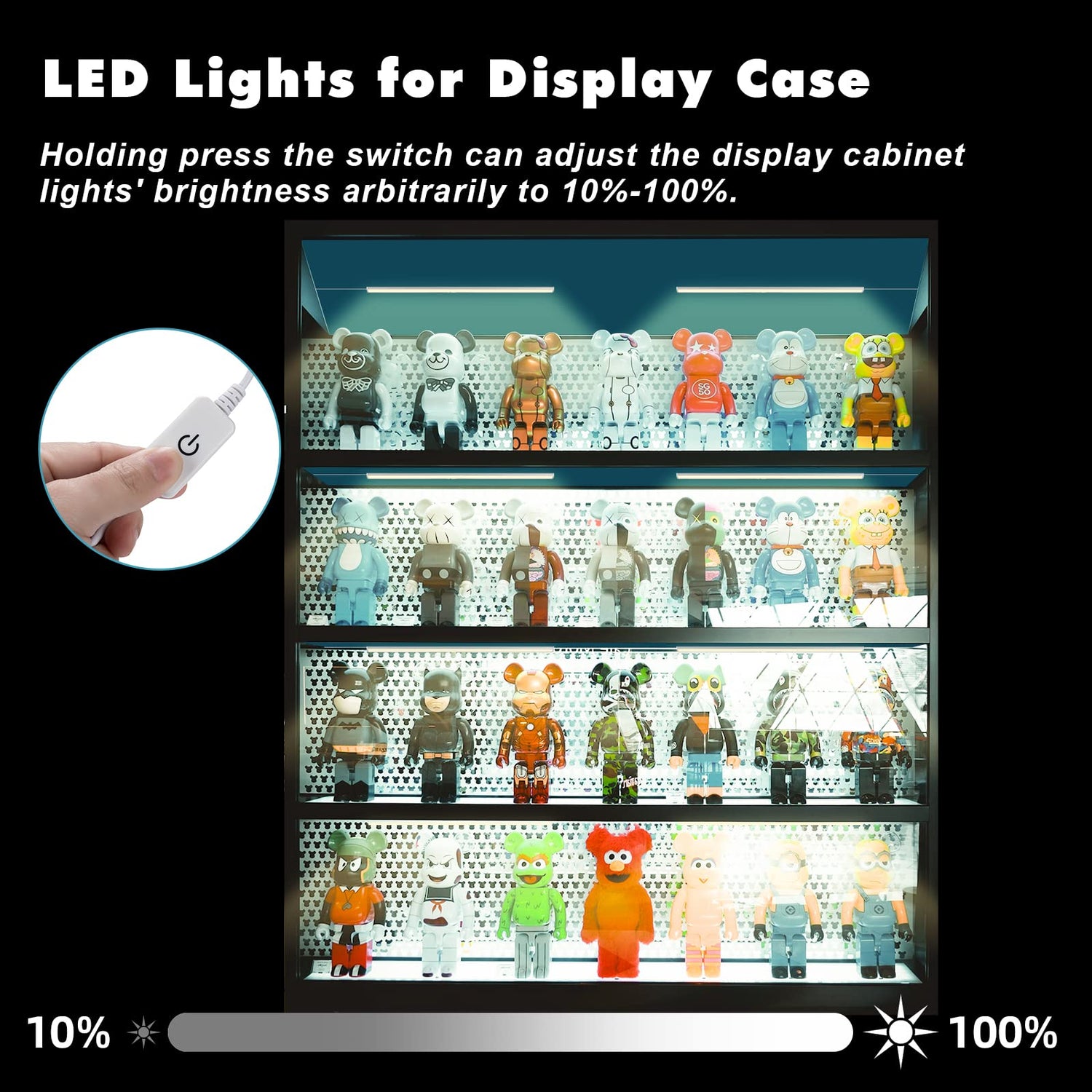 - 💡"Brightness Adjustable" - These display lights are much superior to fluorescent lighting and are dim-able. There is a switch that will dim or brighten the entire led shelf lights in steps as you hold the switch. You can adjust the brightness to a level that is comfortable for your eyes, which is great. Not only that, the bookshelf lighting will remember the last setting used when you turn it on again.