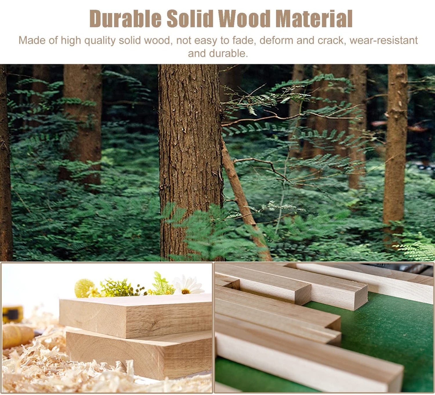 - Made of high quality solid wood, not easy to deform and crack.